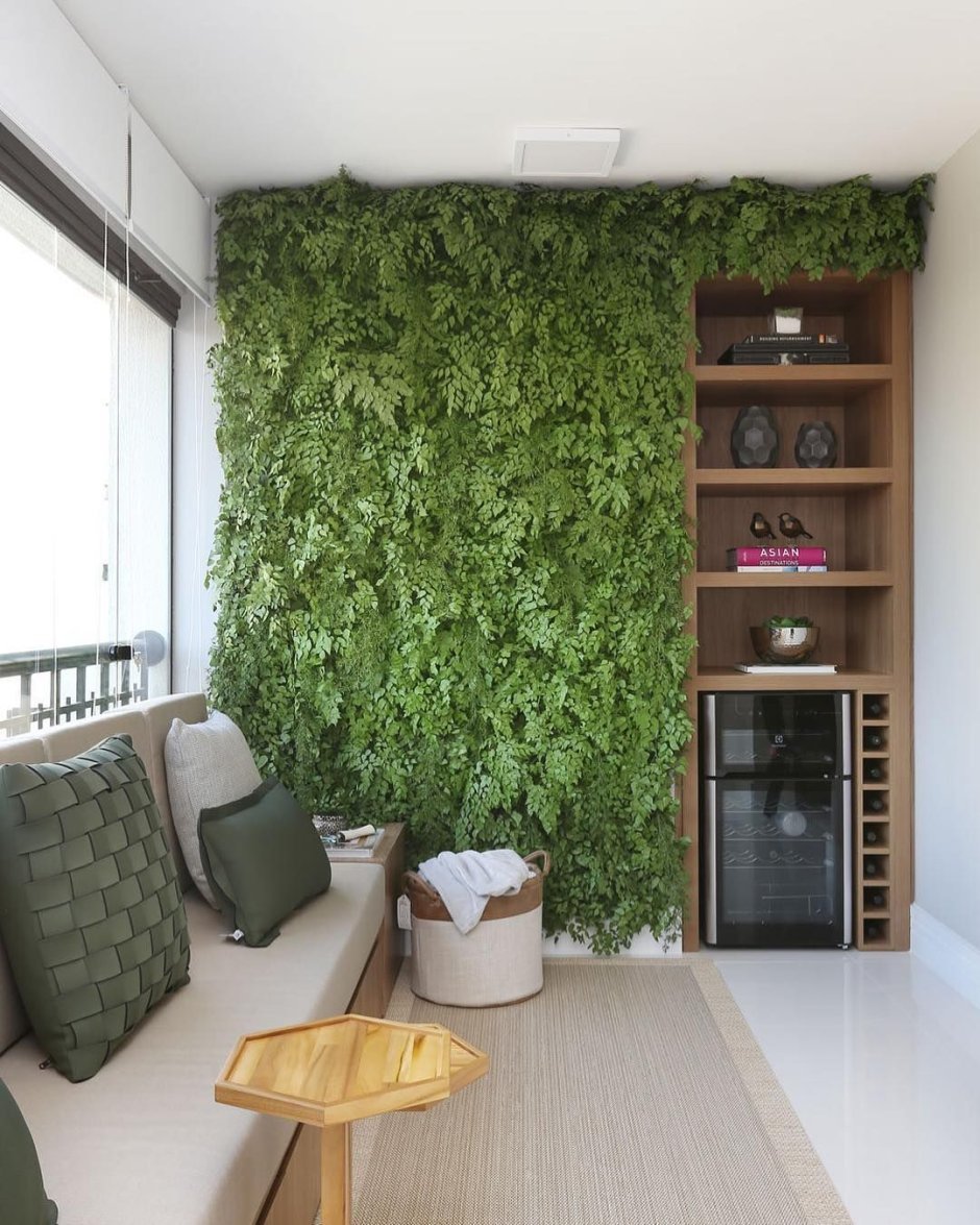 Стена из газона на балконе