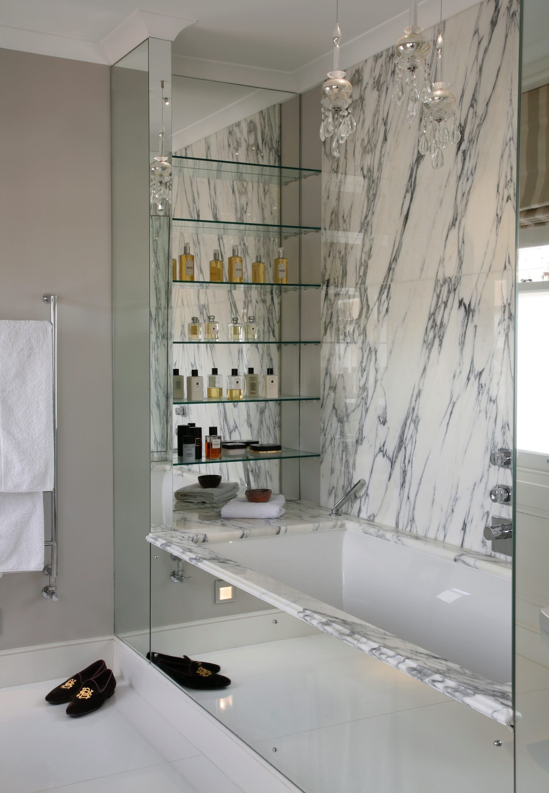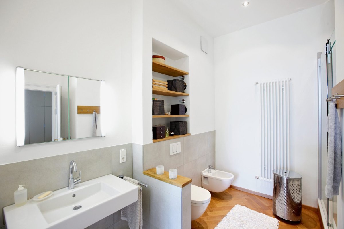 Встроенные полочки в ванной комнате