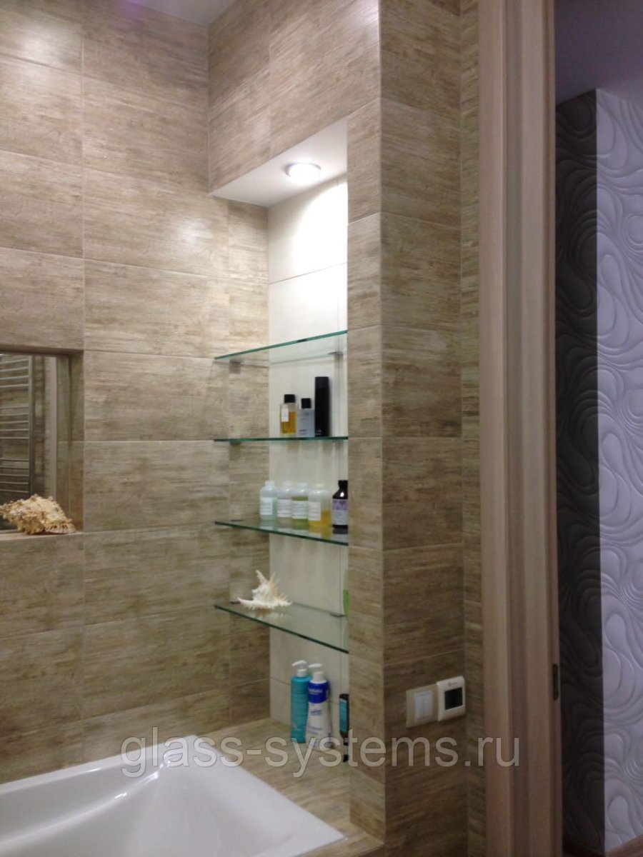 Стеклянные полочки в ванную в нишу