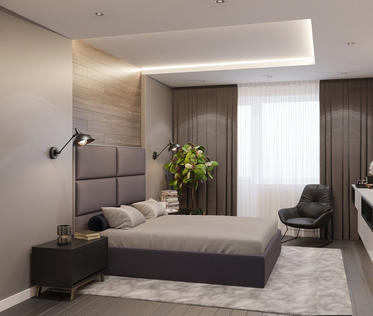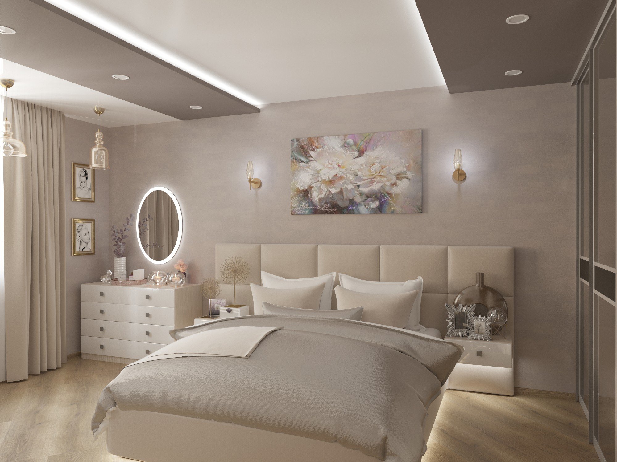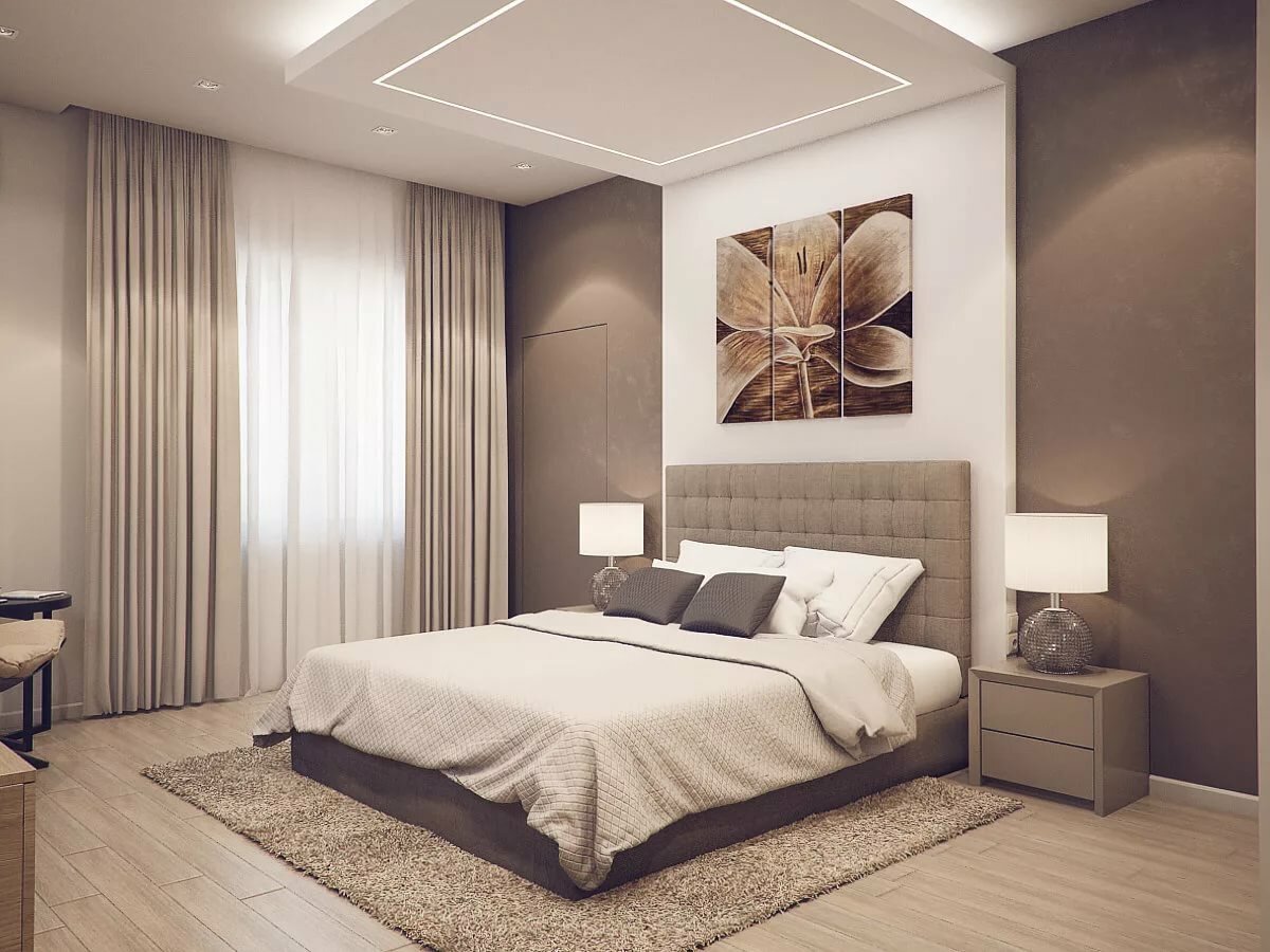 Спальня в стиле Минимализм в кофейно молочных тонах