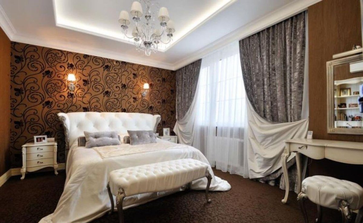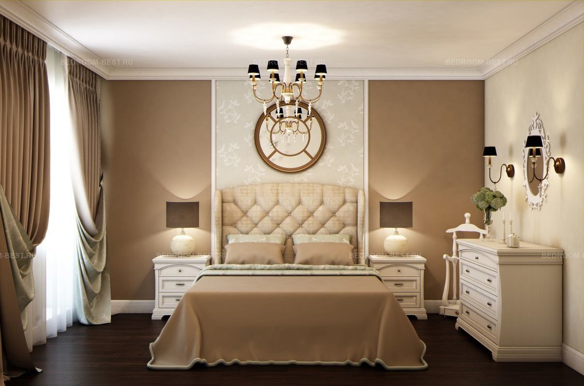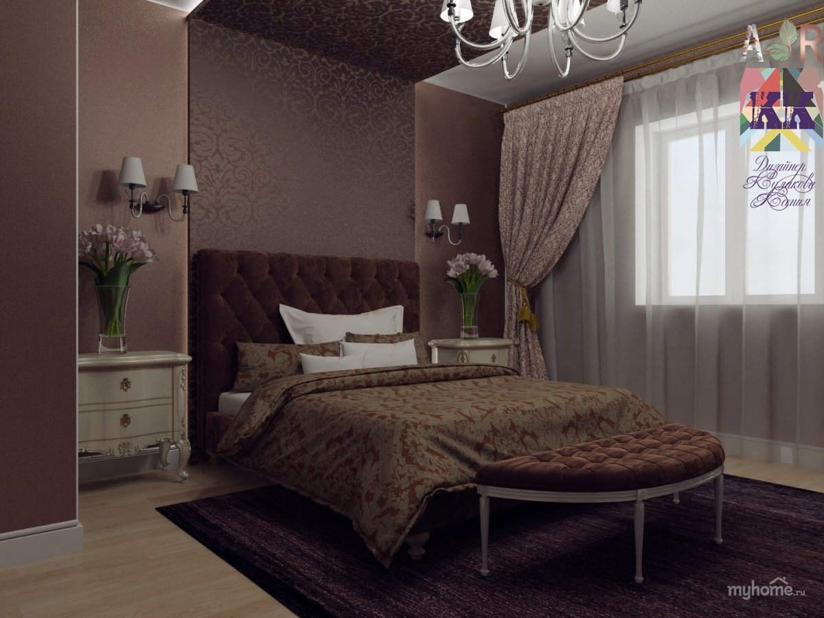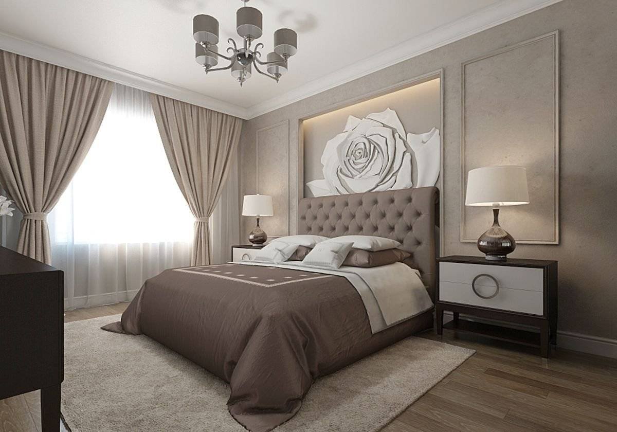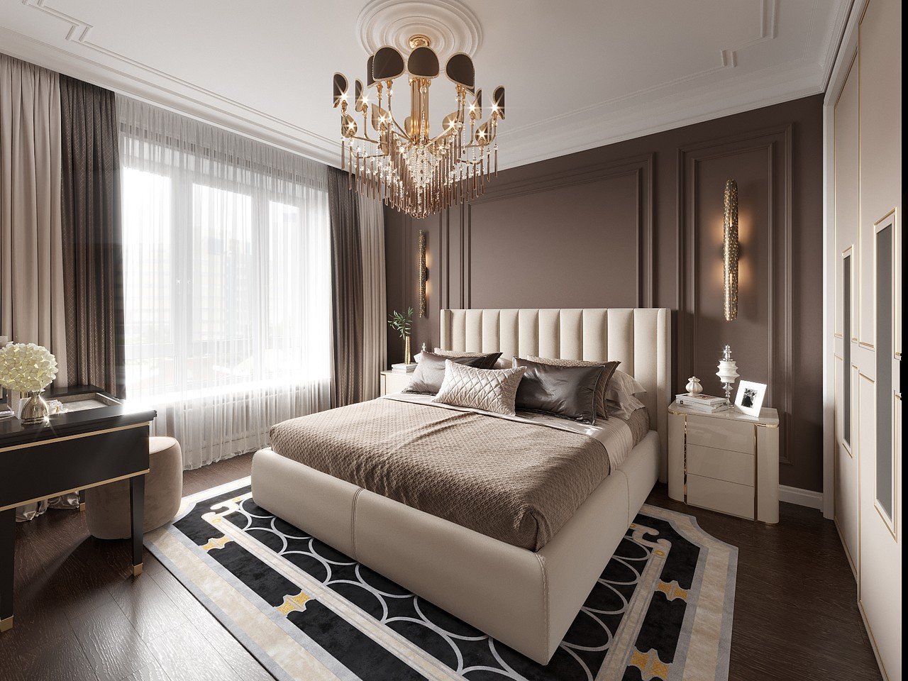 Дизайн спальни в квартире в кофейных тонах в классическом стиле