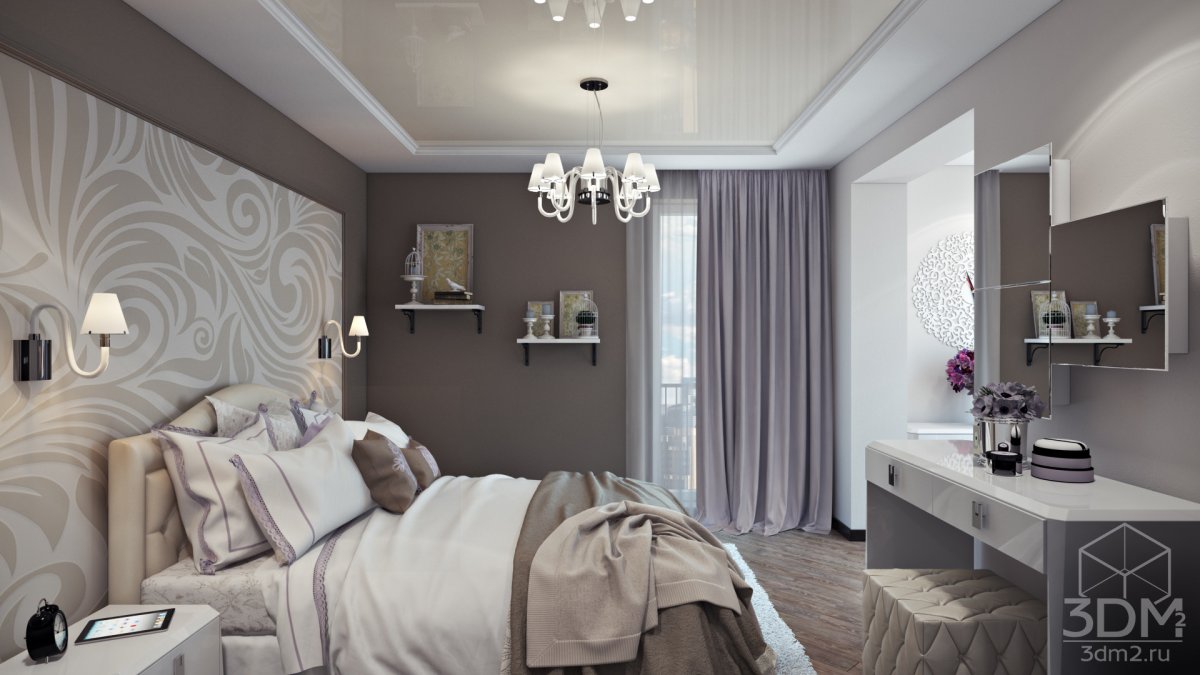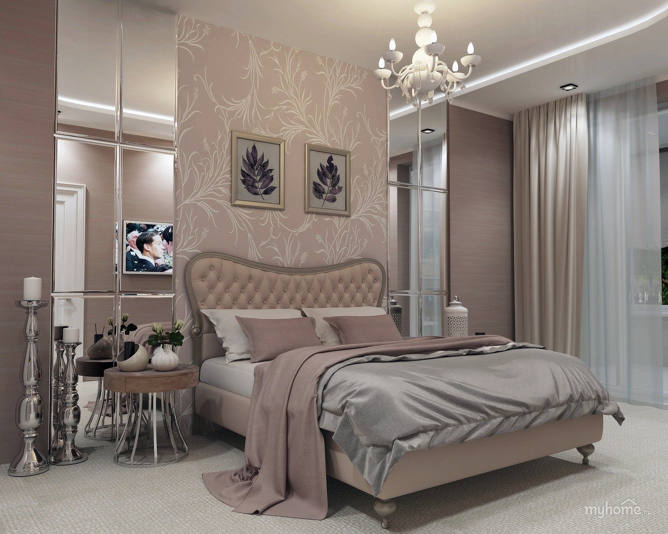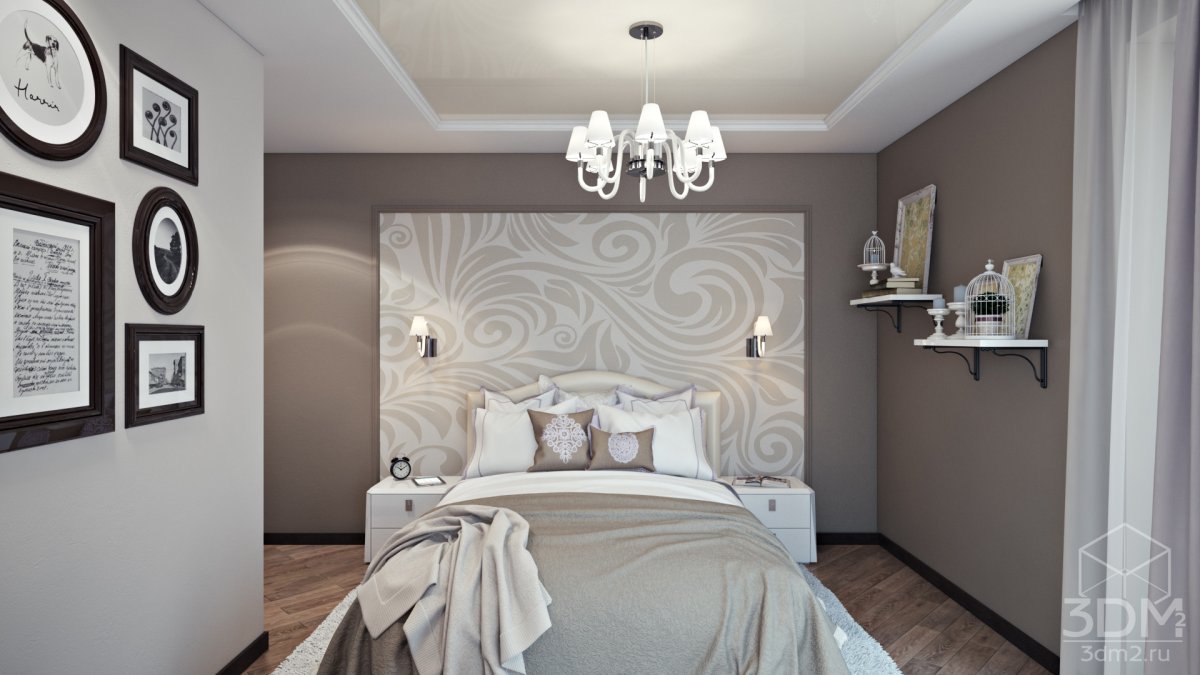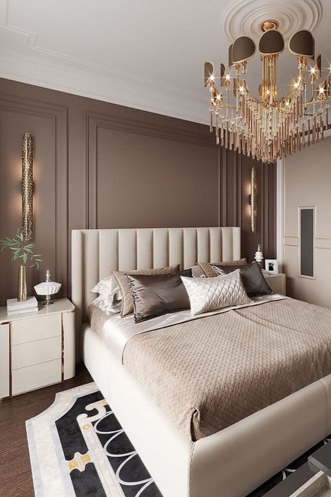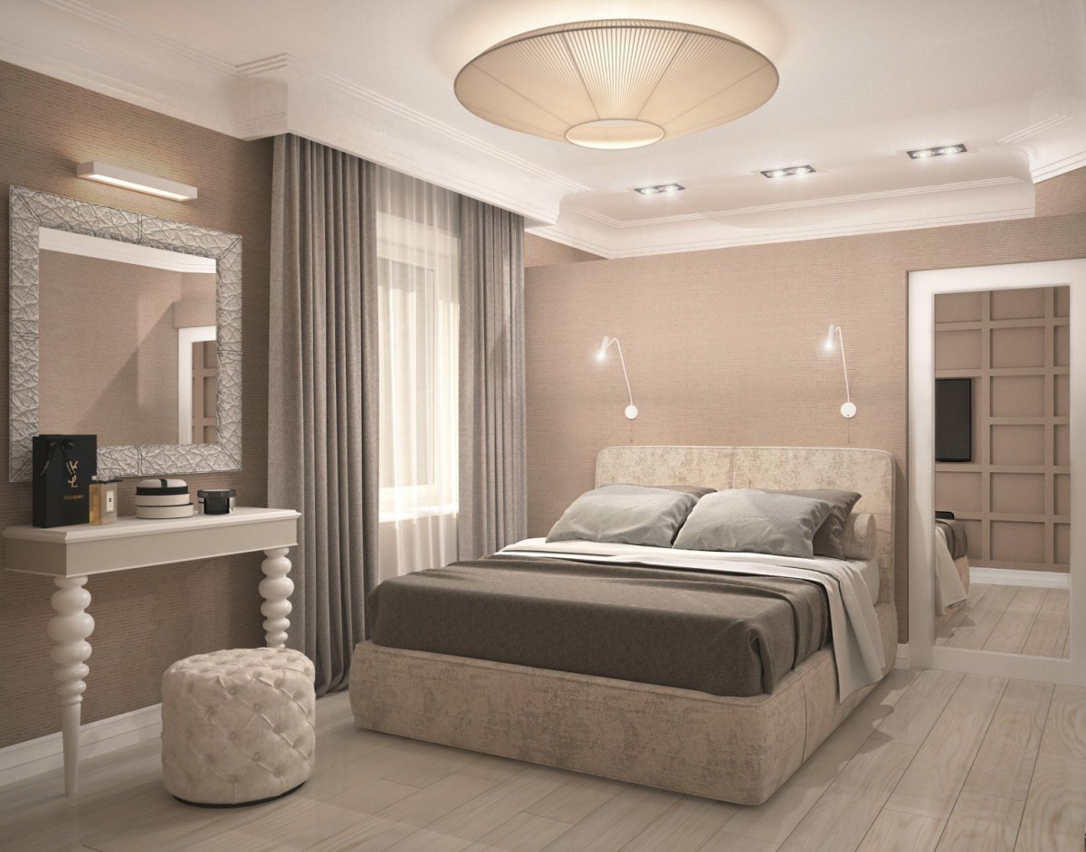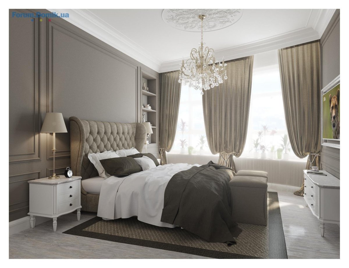 Дизайн спальни в квартире в кофейных тонах в классическом стиле