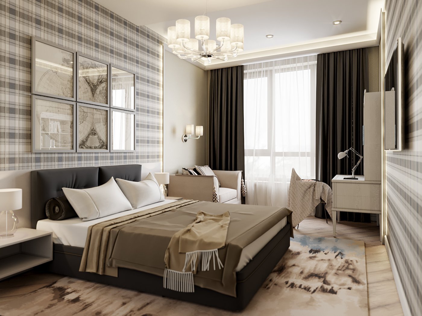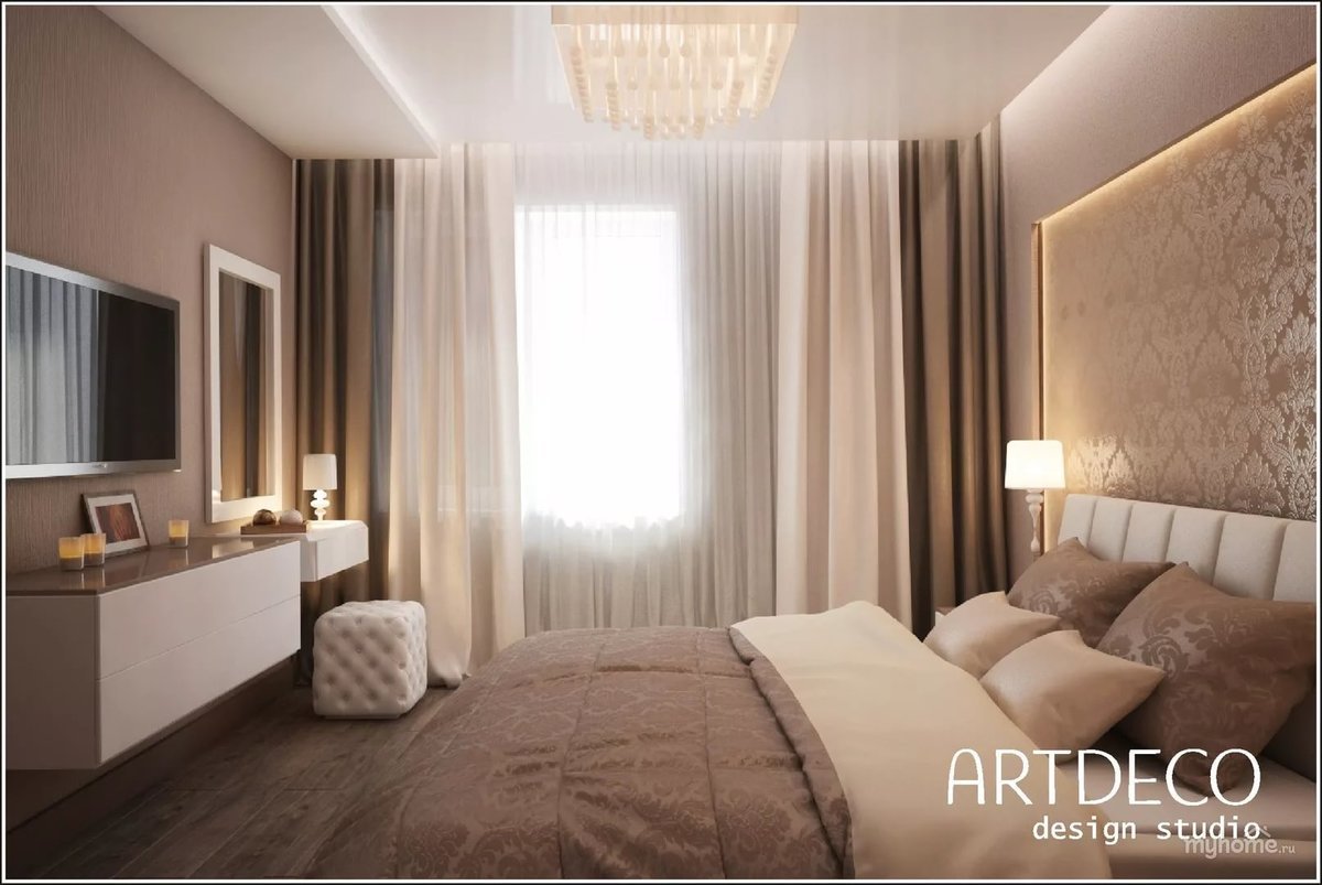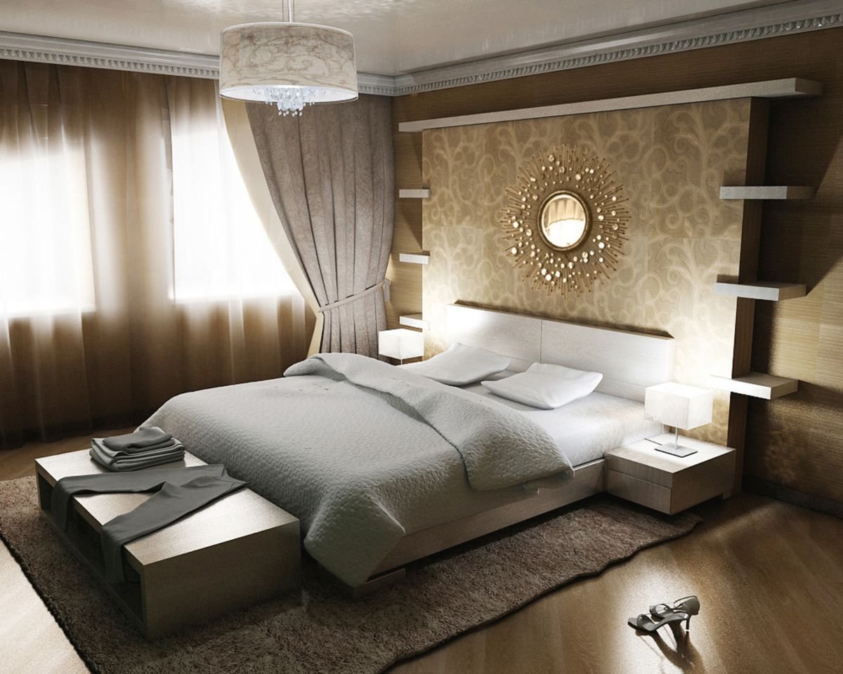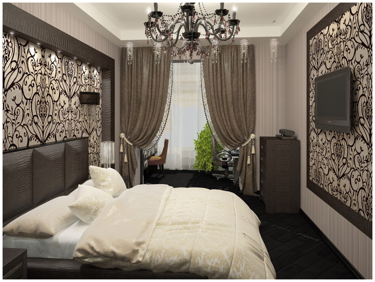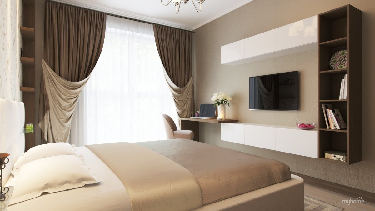 Дизайн спальни в квартире в кофейных тонах в классическом стиле