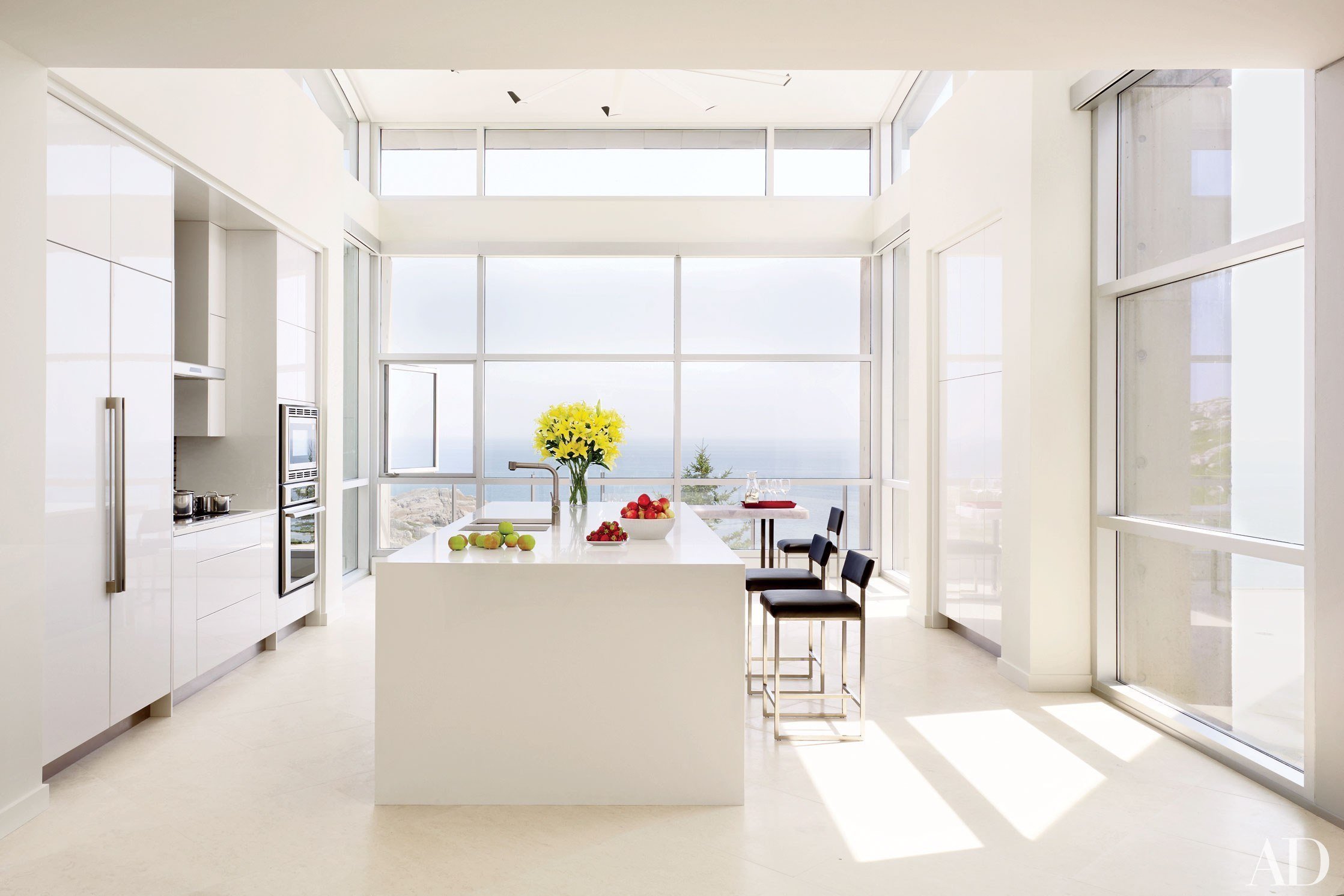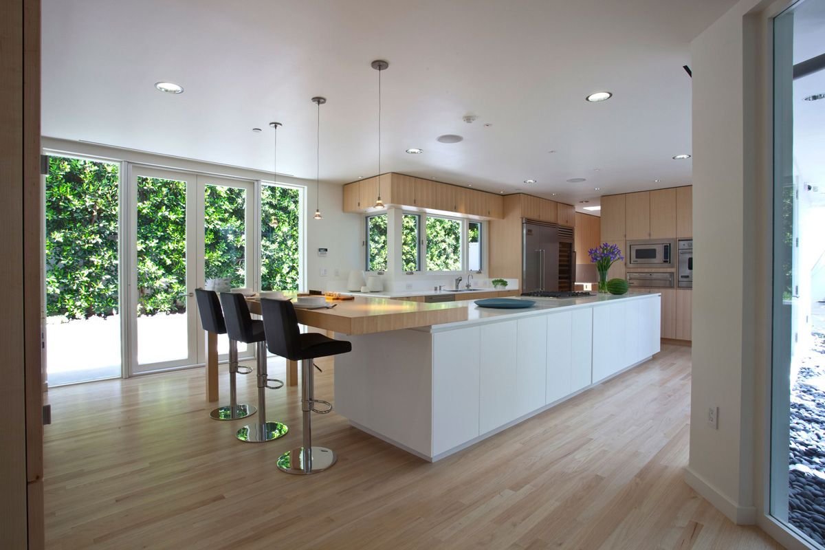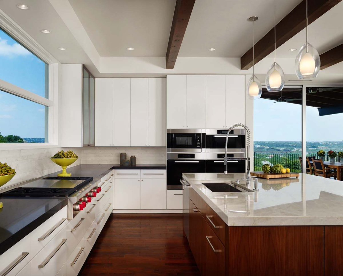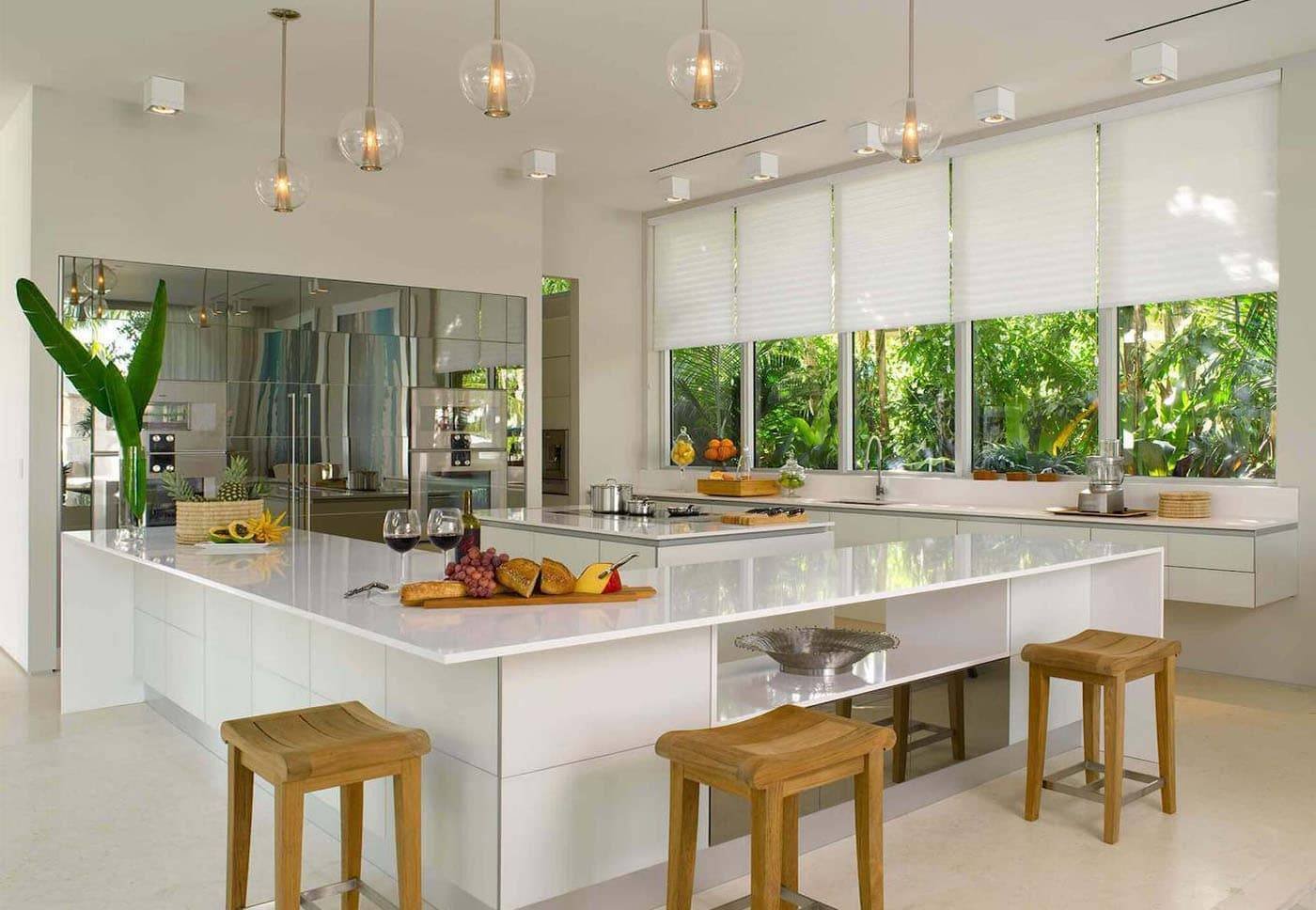 Кухни в стиле Модерн с барной стойкой и панорамными окнами