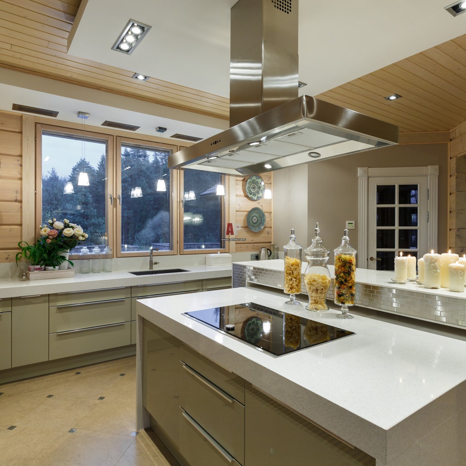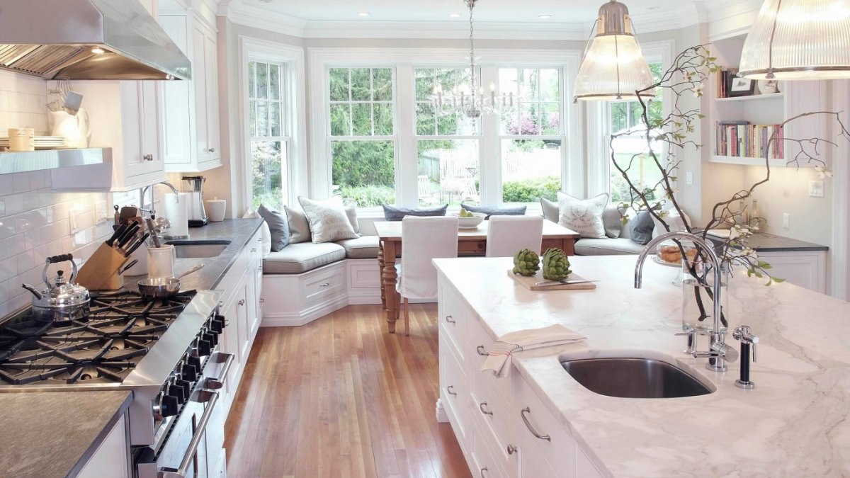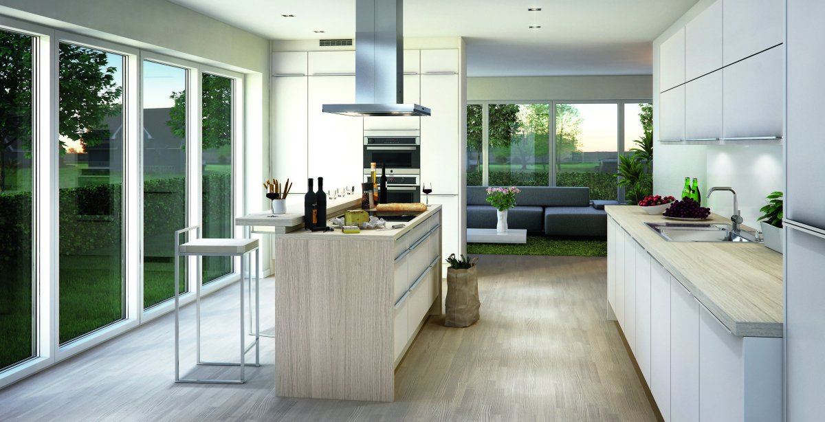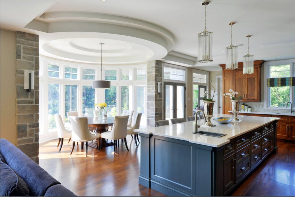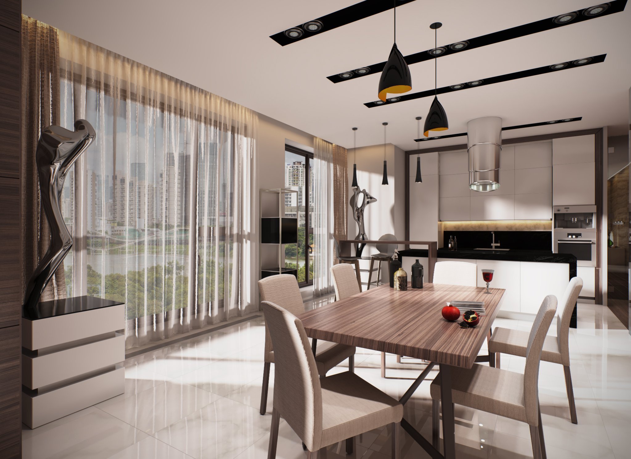 Кухни в стиле Модерн с барной стойкой и панорамными окнами