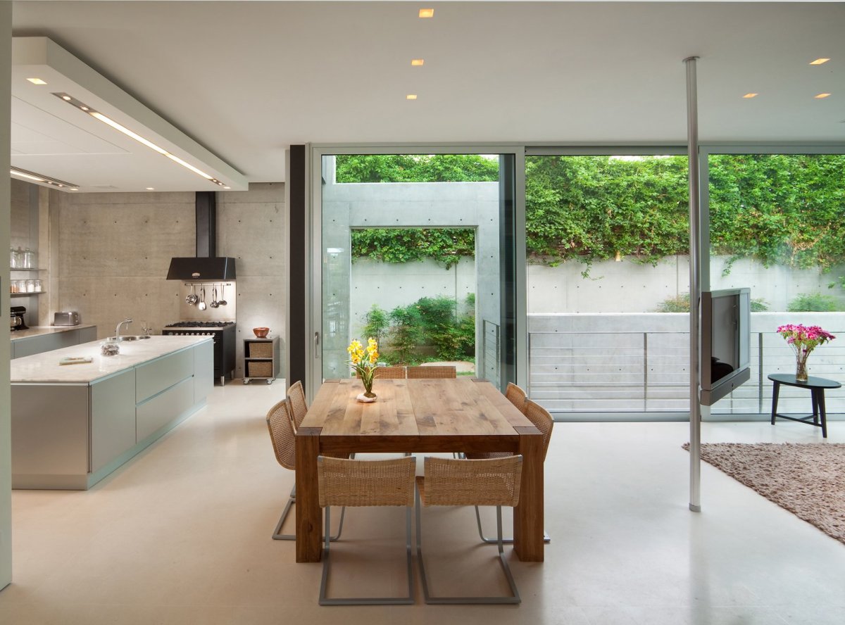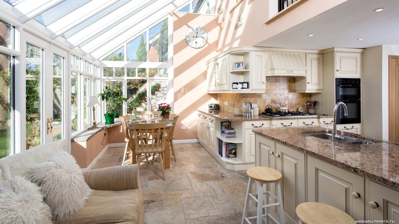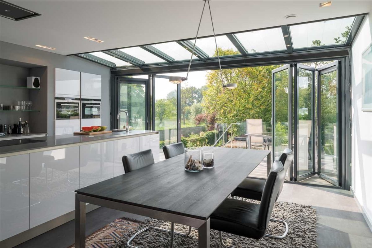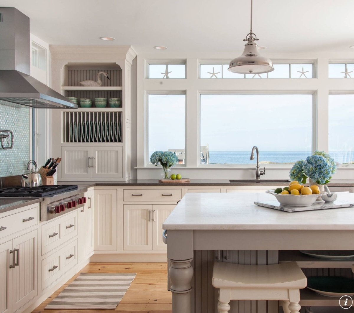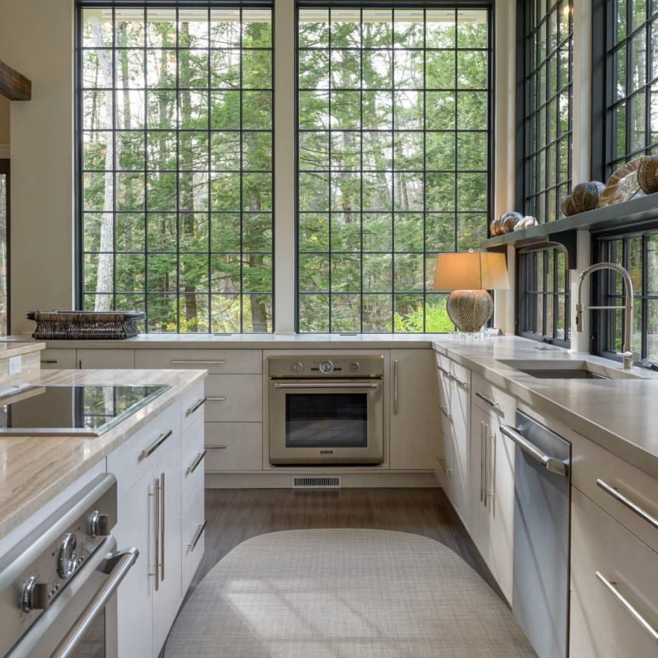 Кухни в стиле Модерн с барной стойкой и панорамными окнами