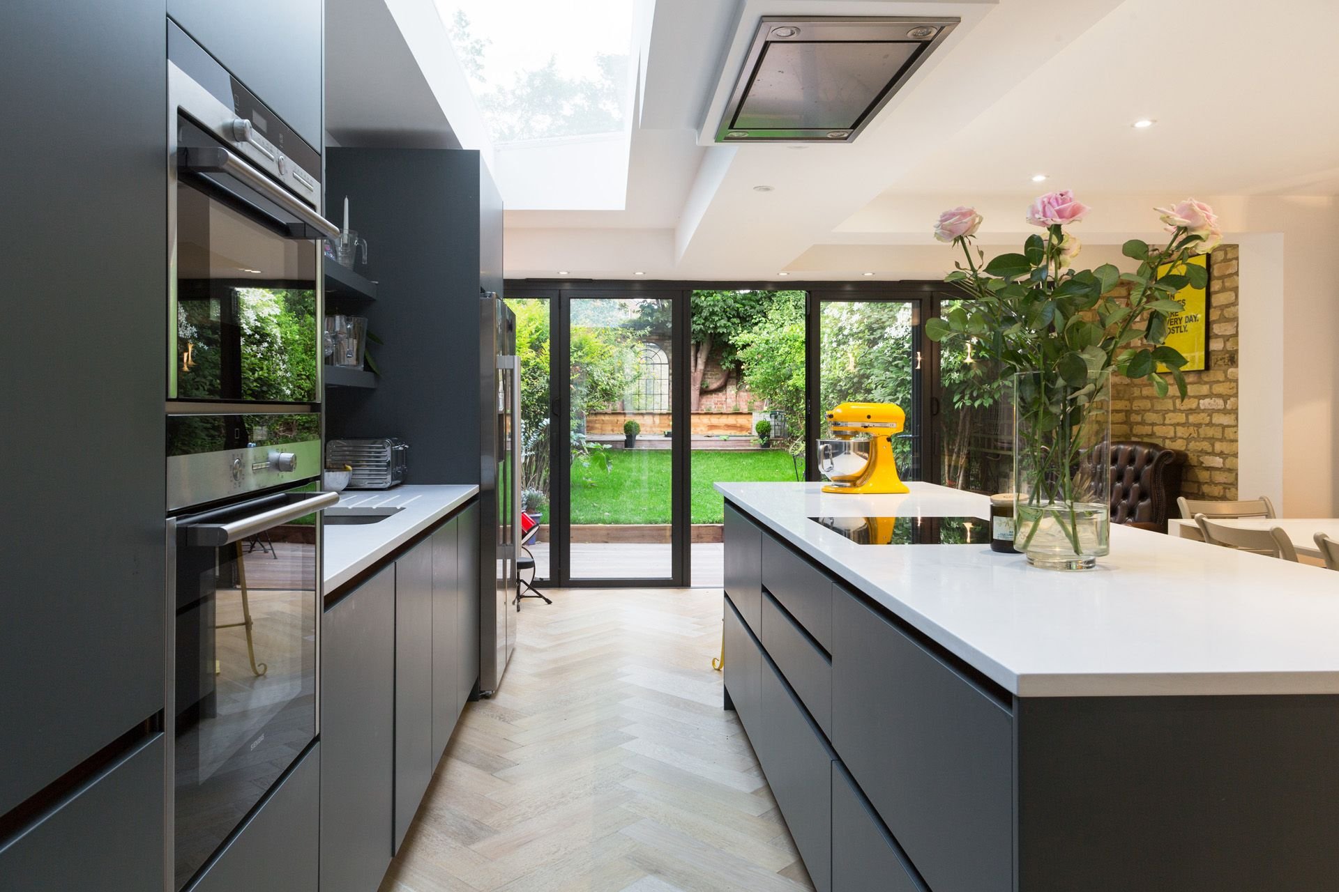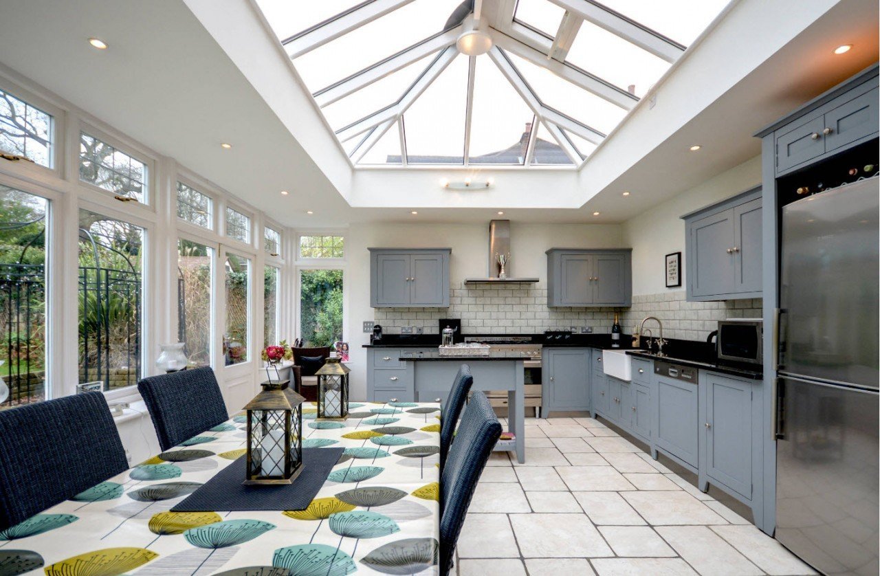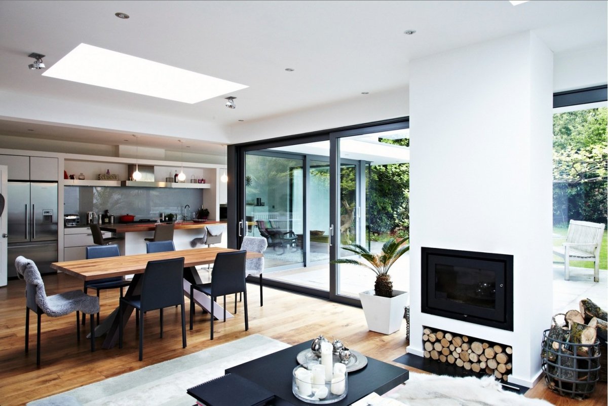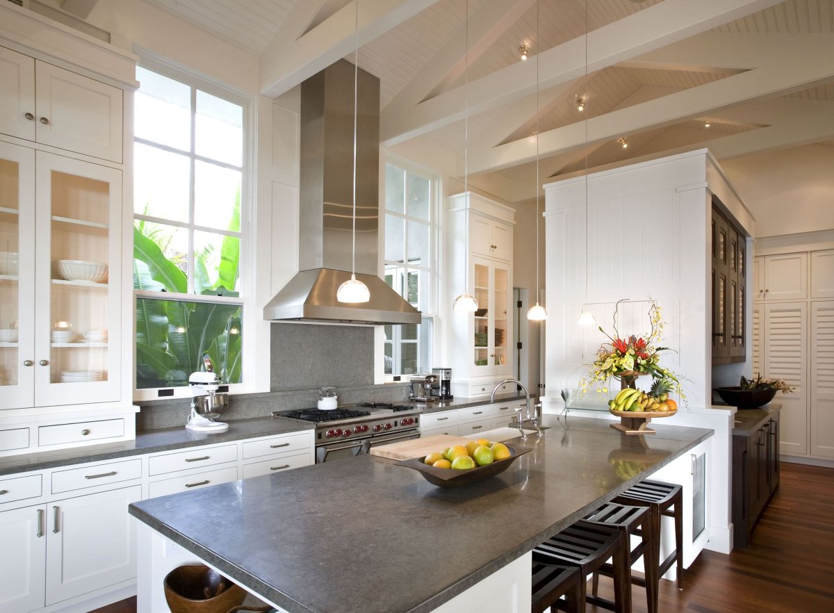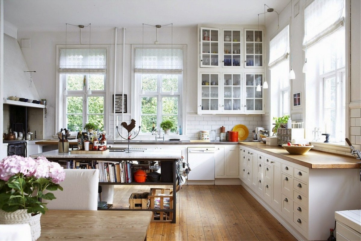 Кухни в стиле Модерн с барной стойкой и панорамными окнами