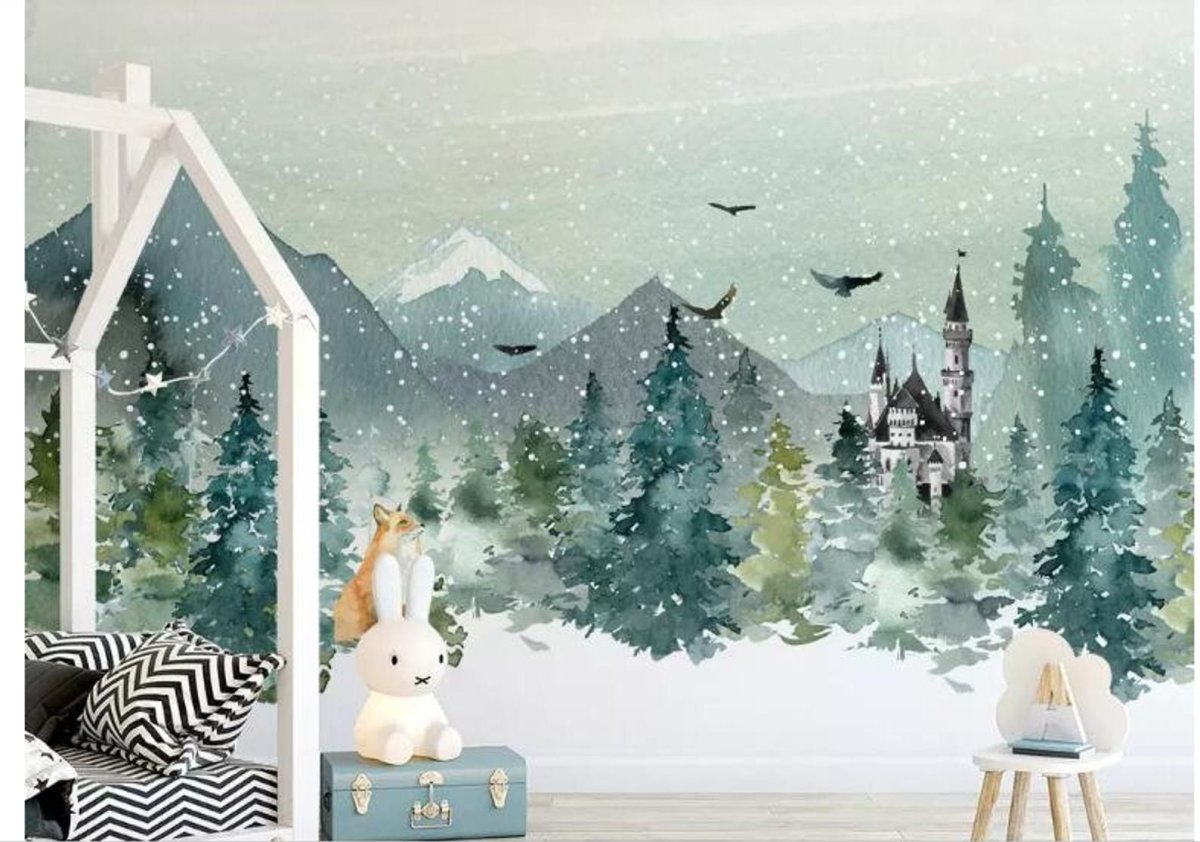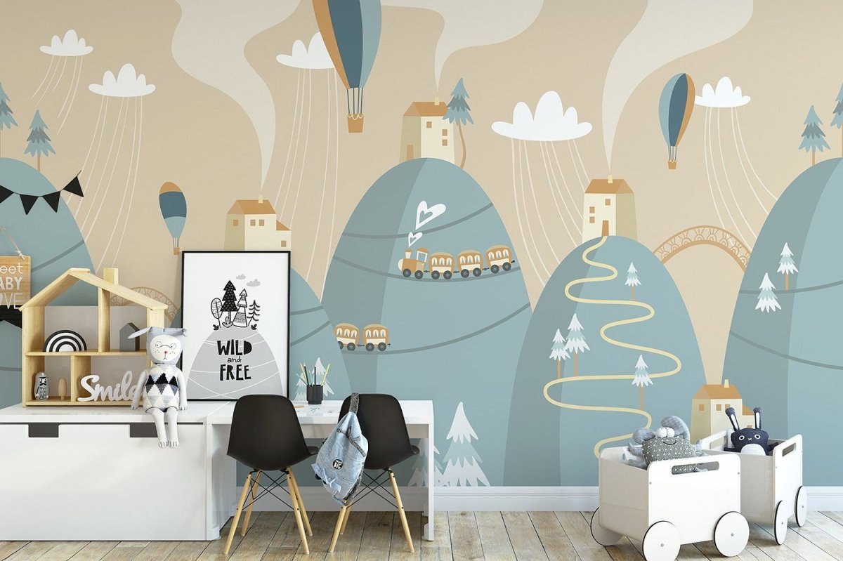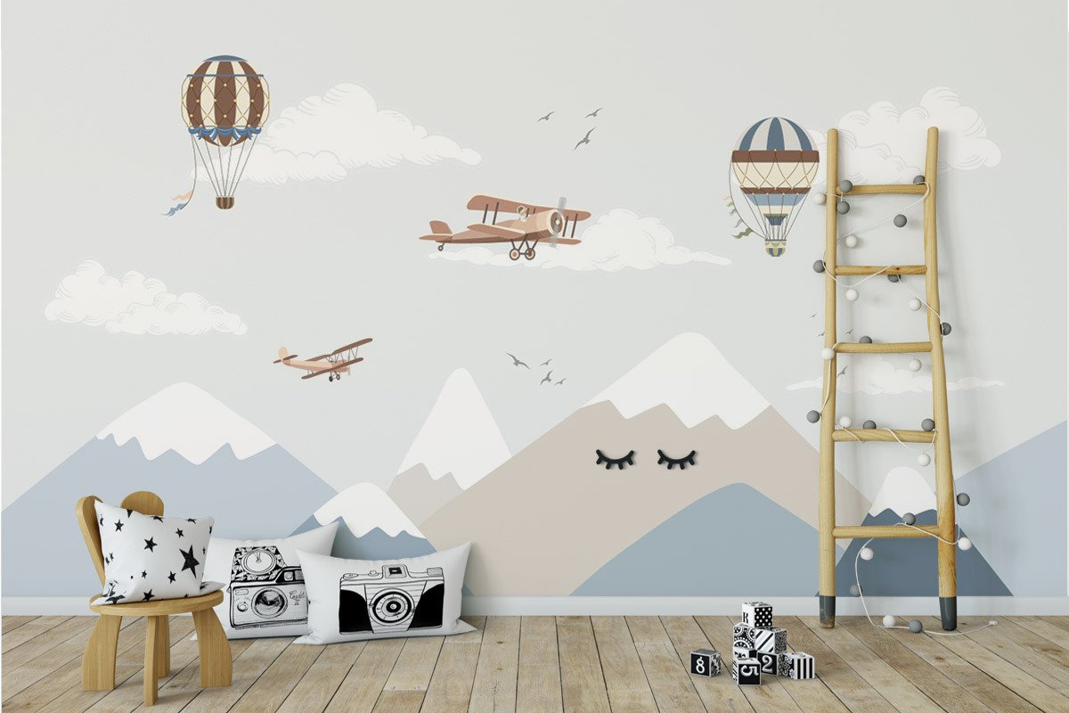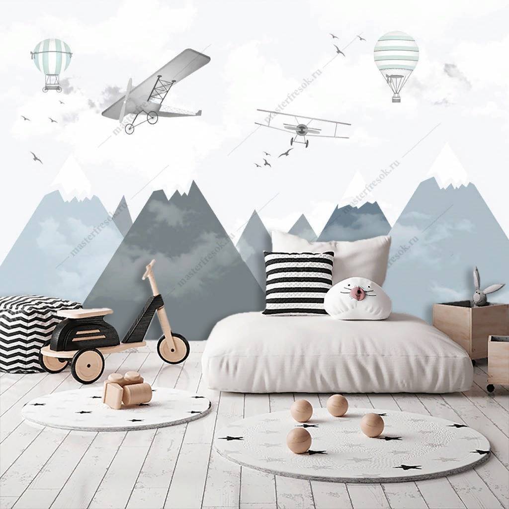 Детская комната с горами на стене