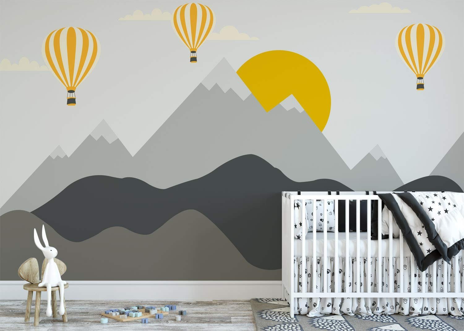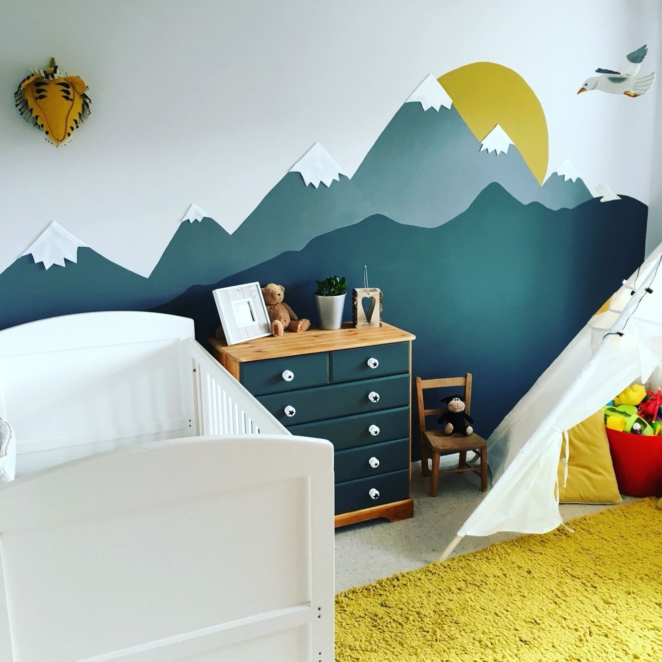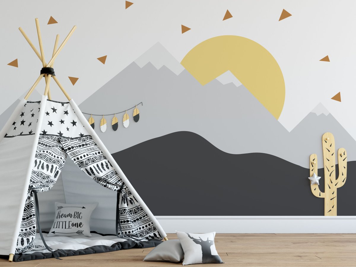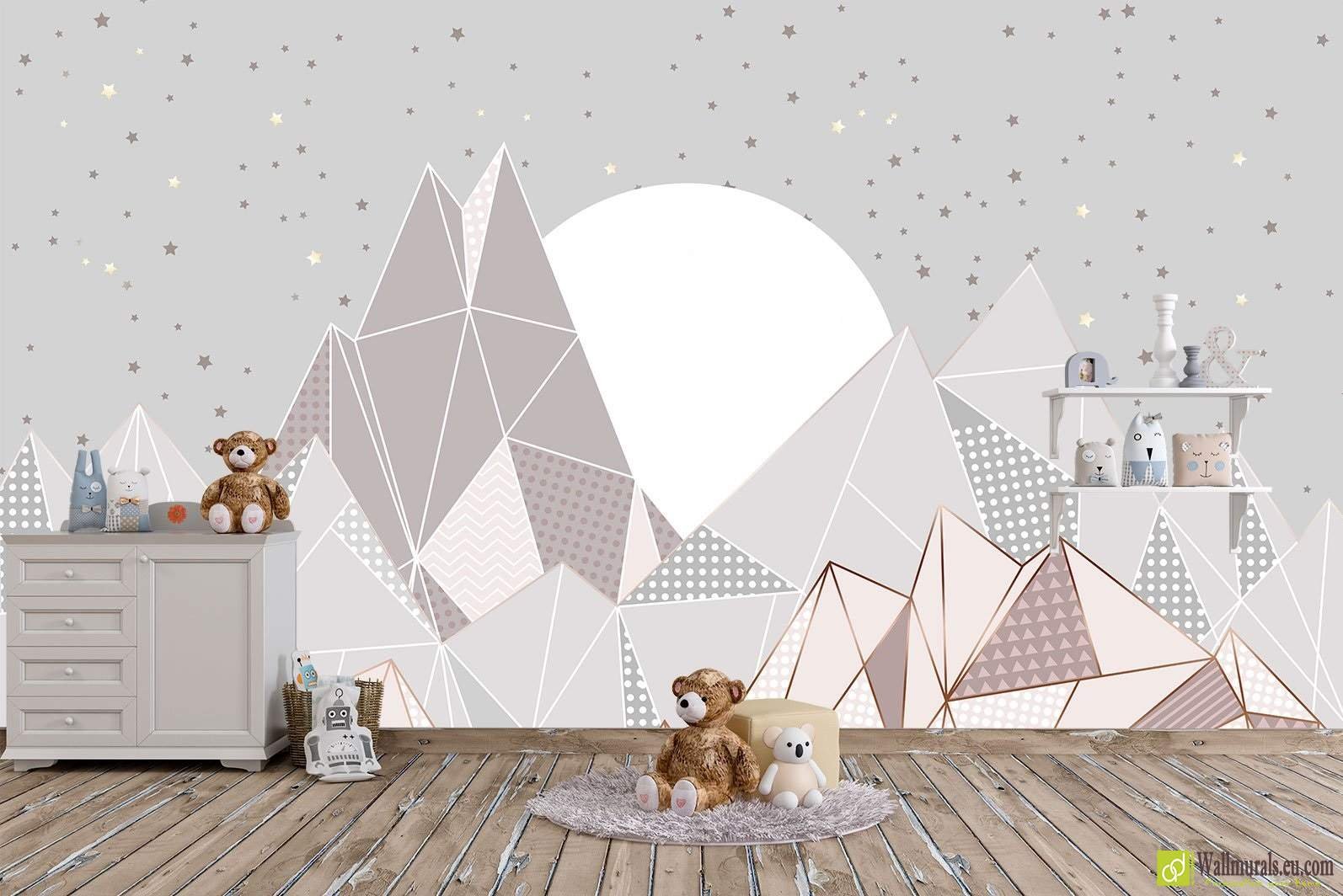 Горы на стене в детской в скандинавском стиле