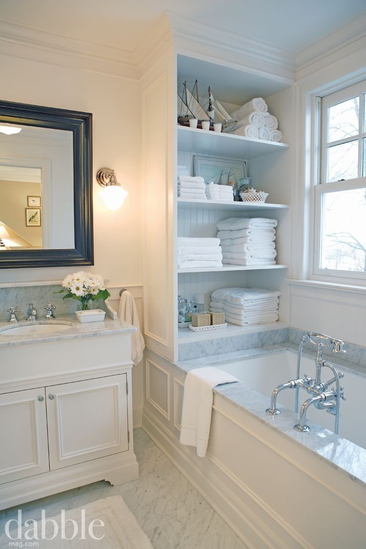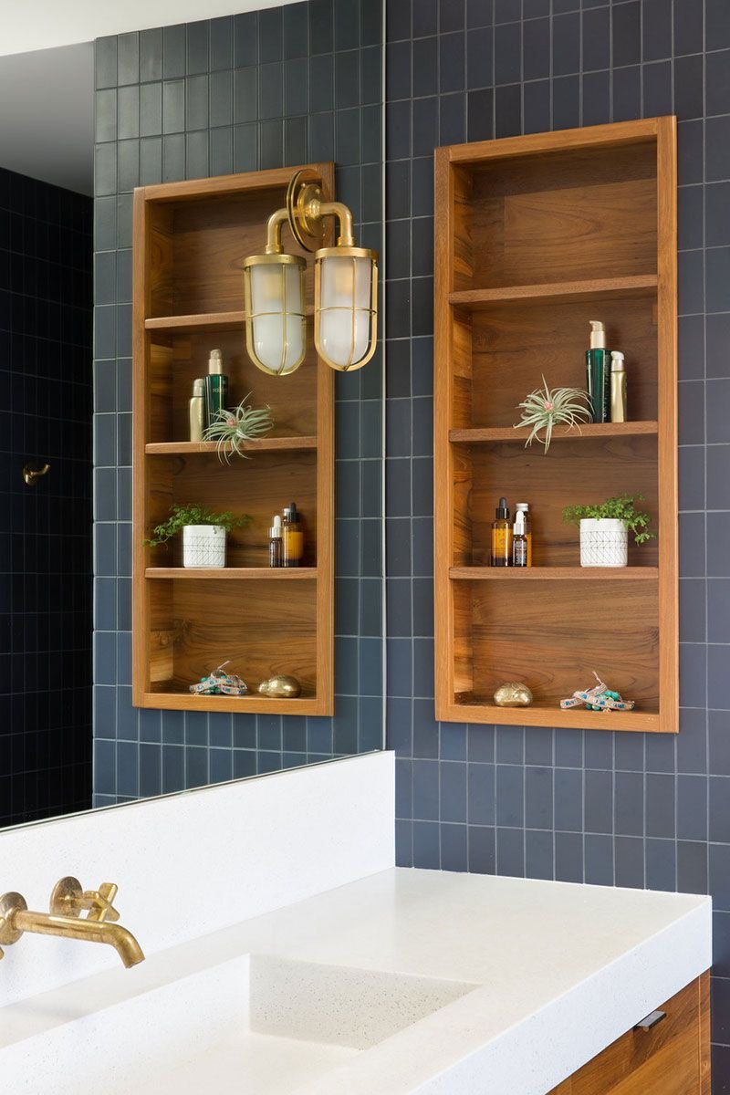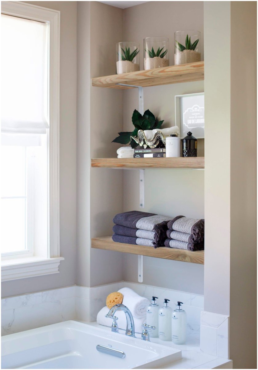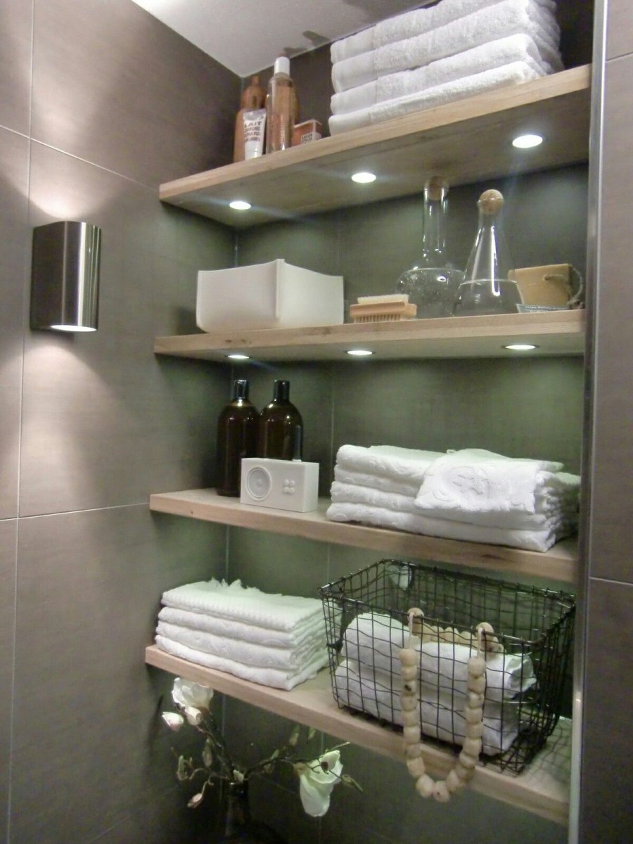 Встроенные полки в ванной комнате