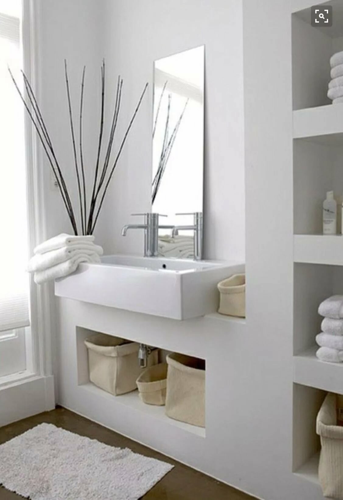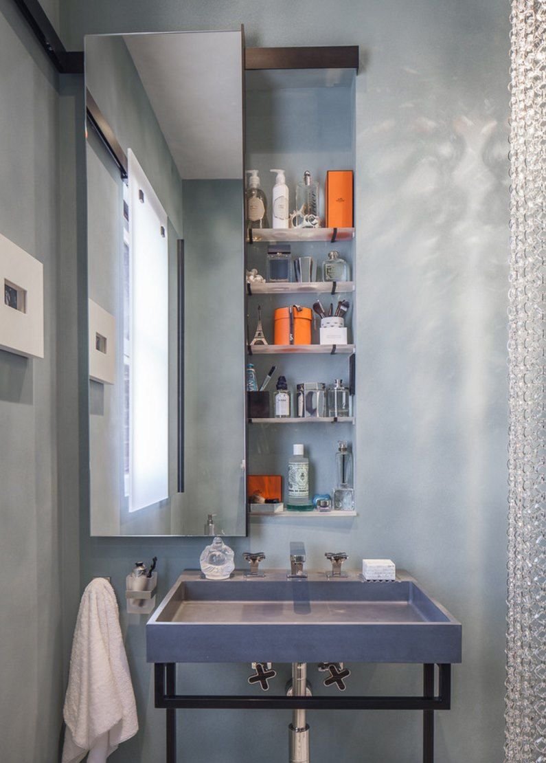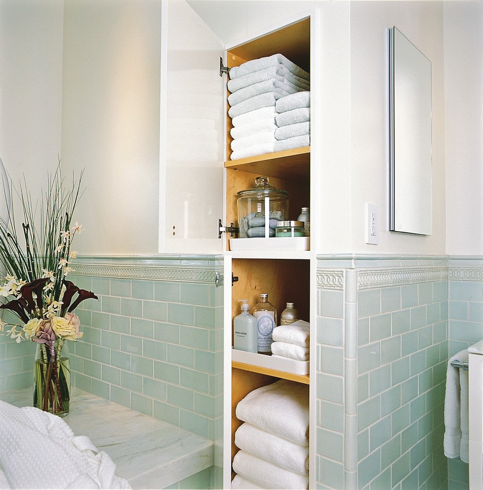 Встроенные полки в ванной комнате