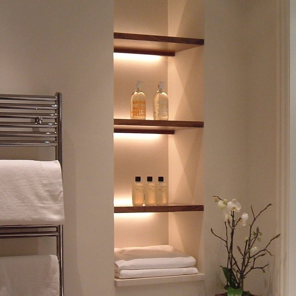 Полочки в ванной с подсветкой