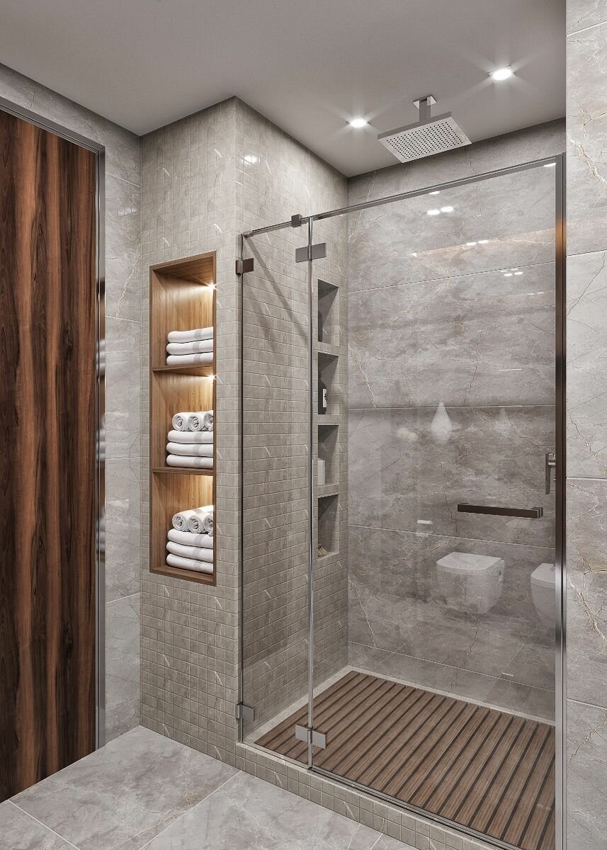 Встроенные полочки в ванной