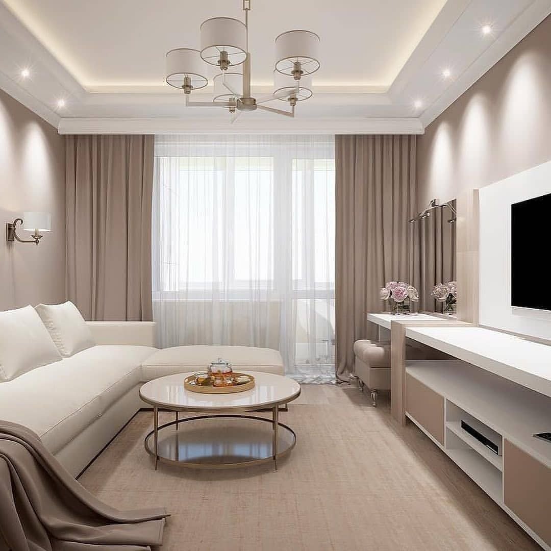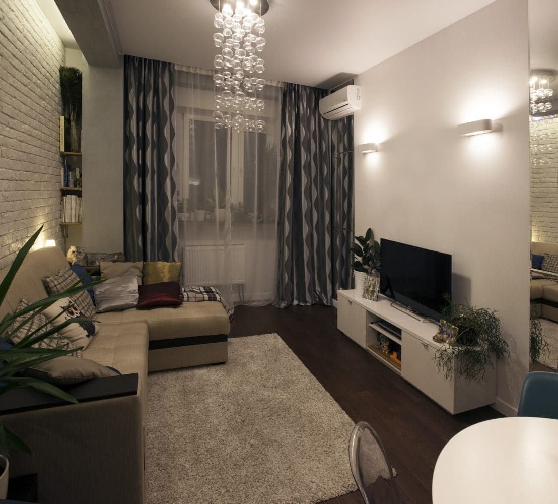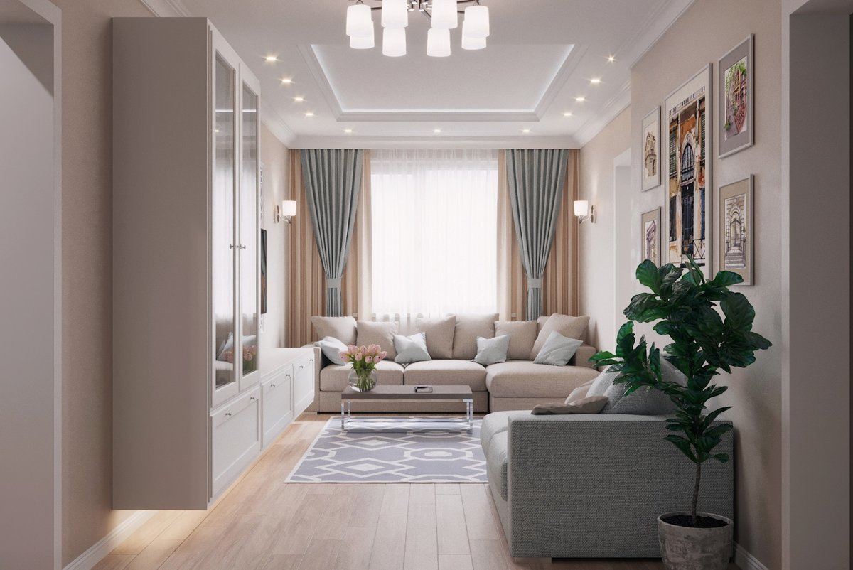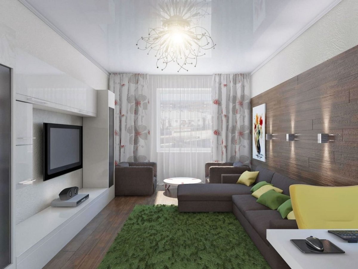 Интерьер гостиной 18 кв.м прямоугольной формы