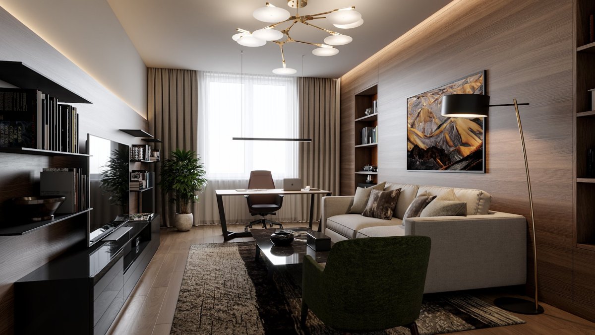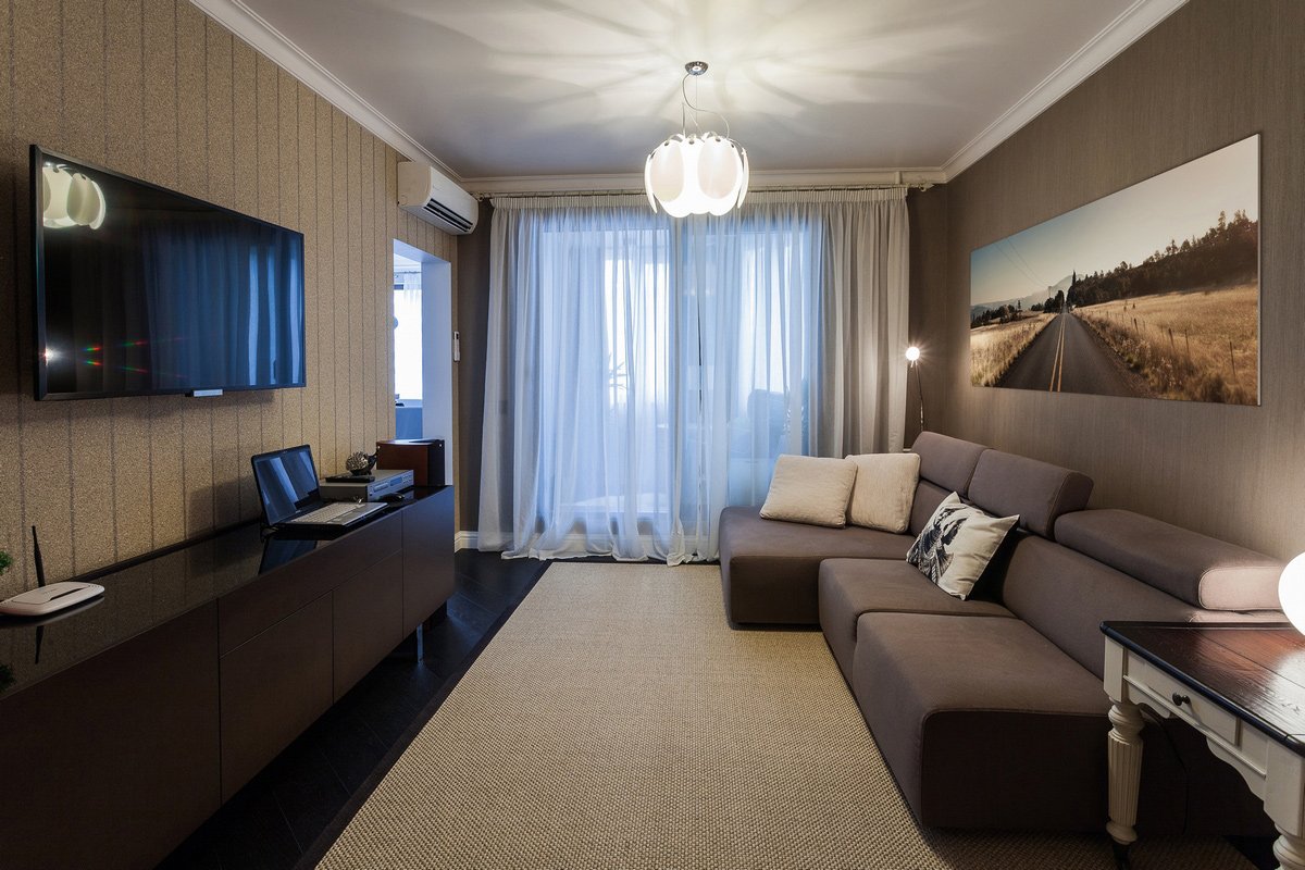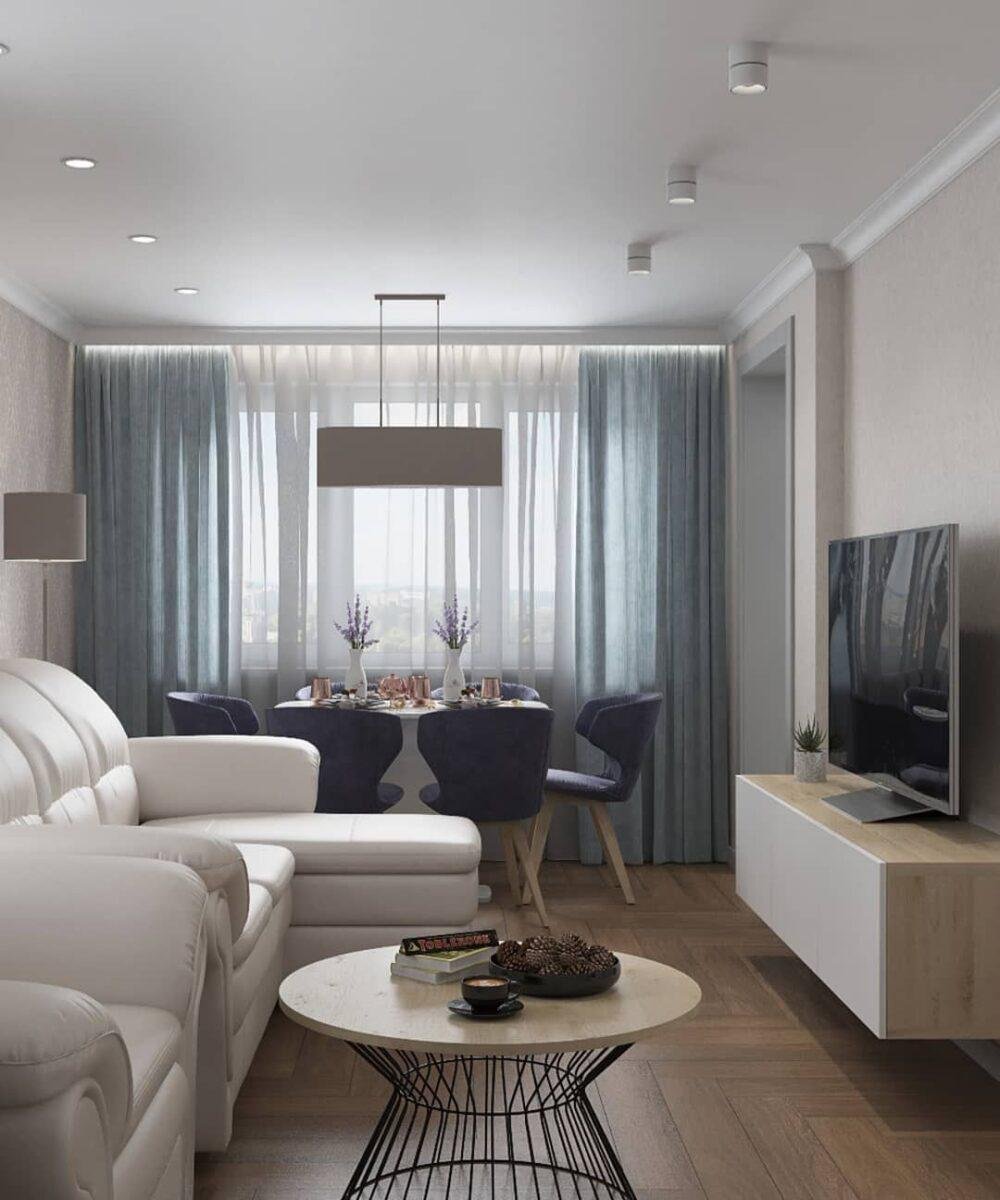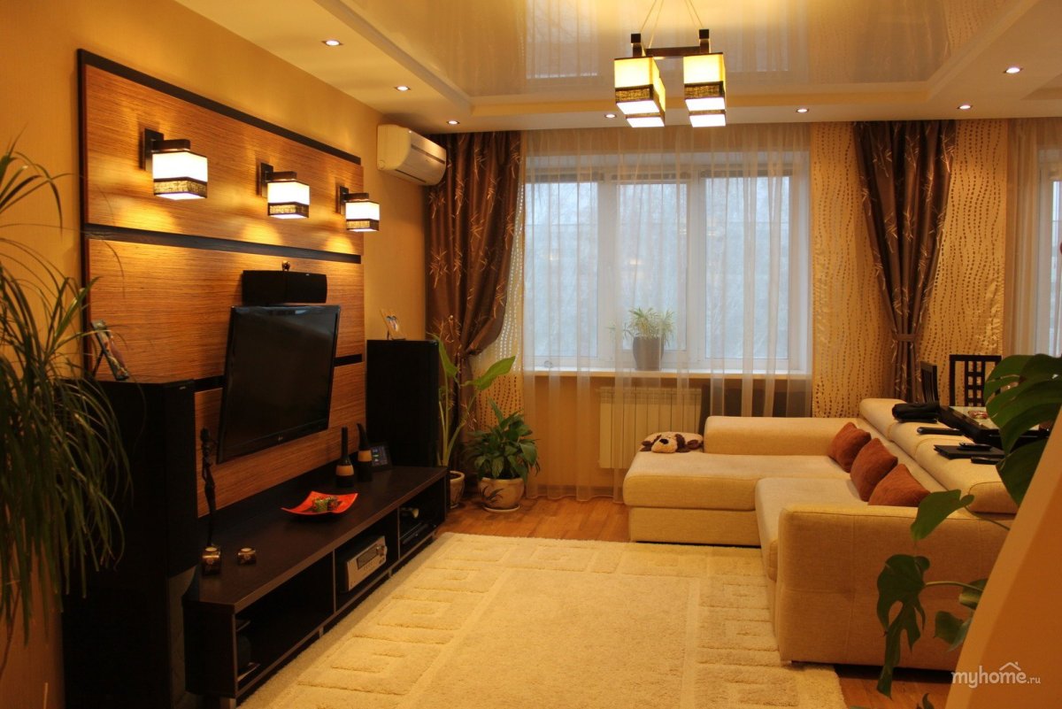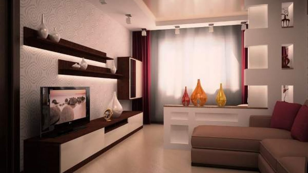 Интерьер гостиной 18 кв.м прямоугольной формы