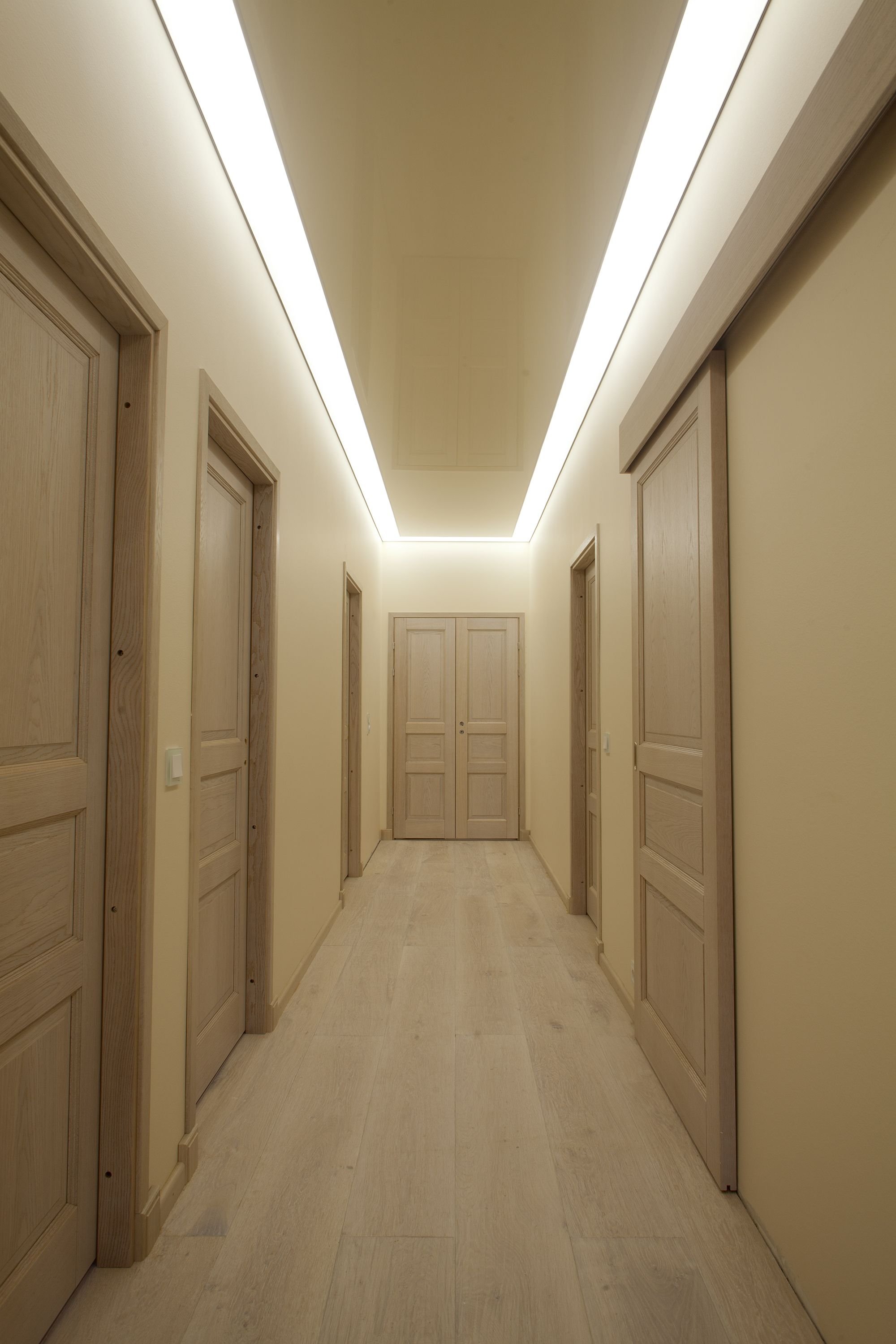 Потолок в узком коридоре линиями