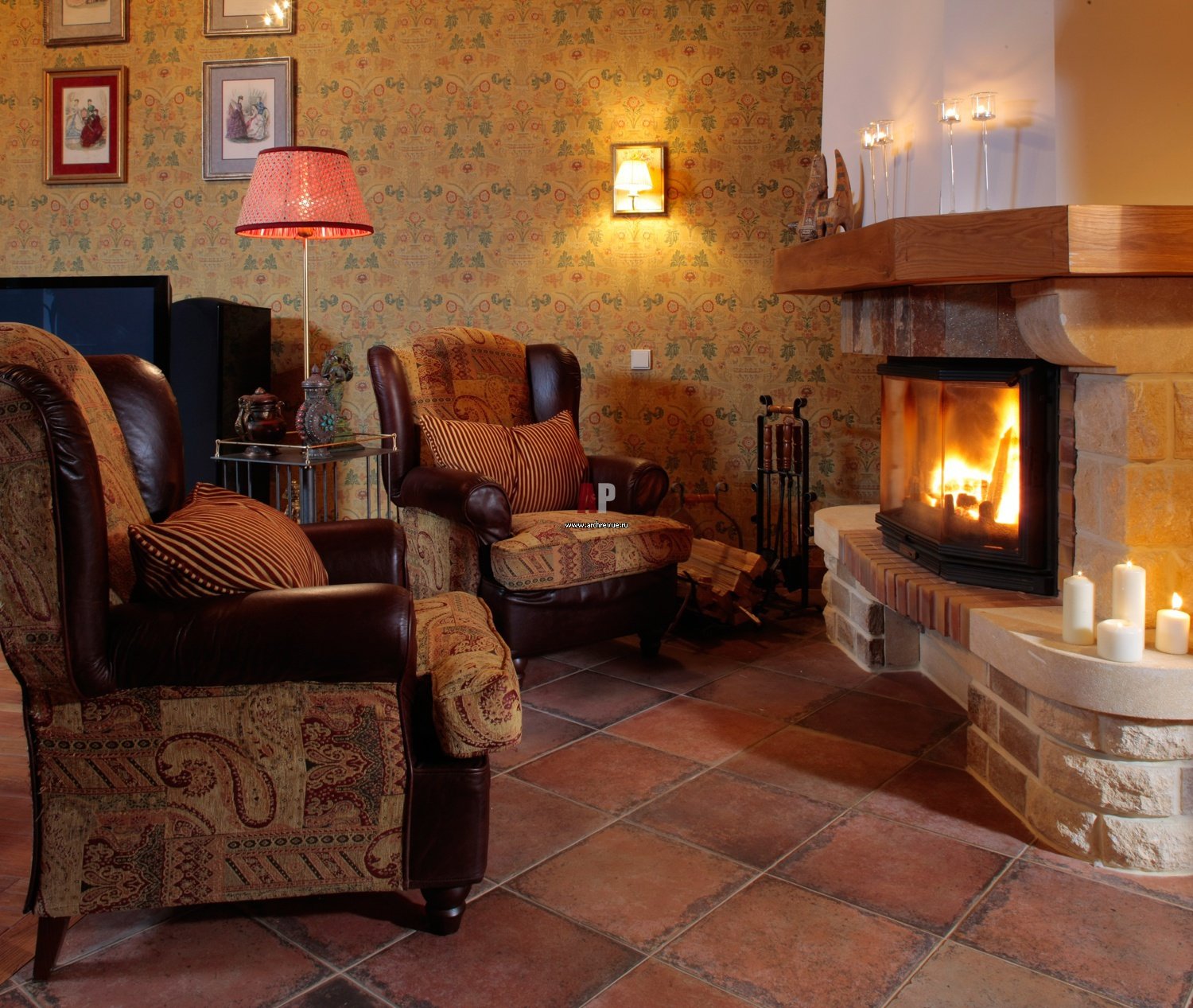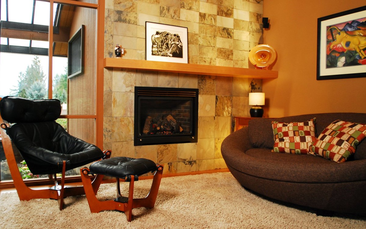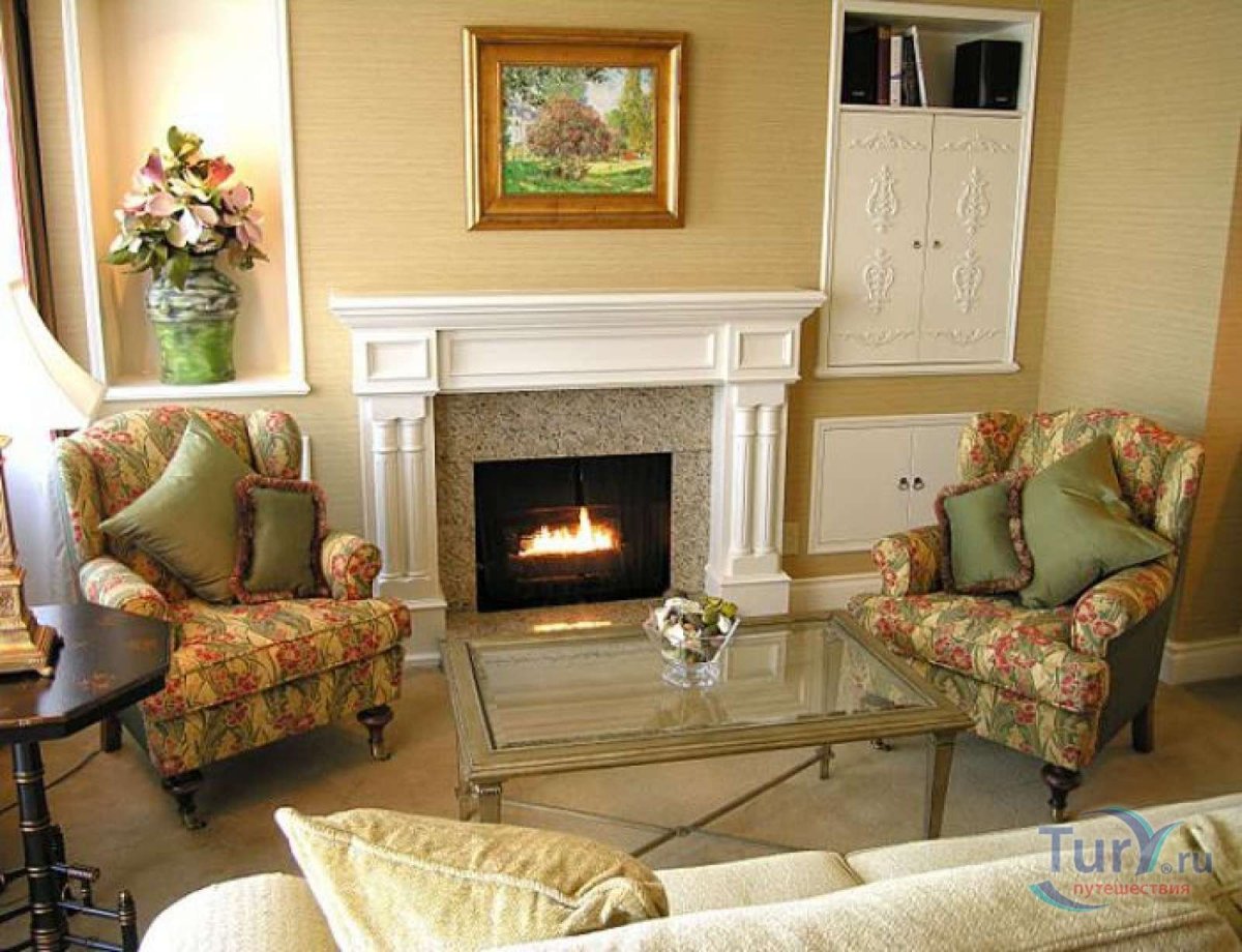 Камин с креслами в интерьере