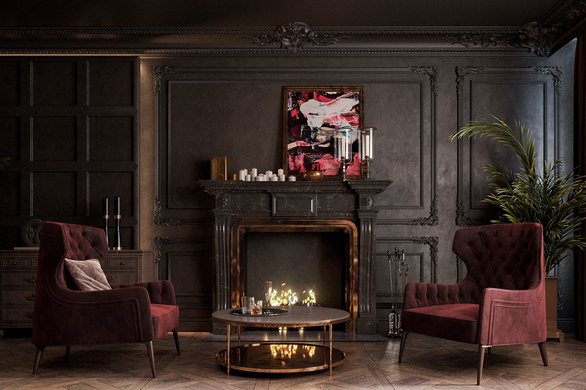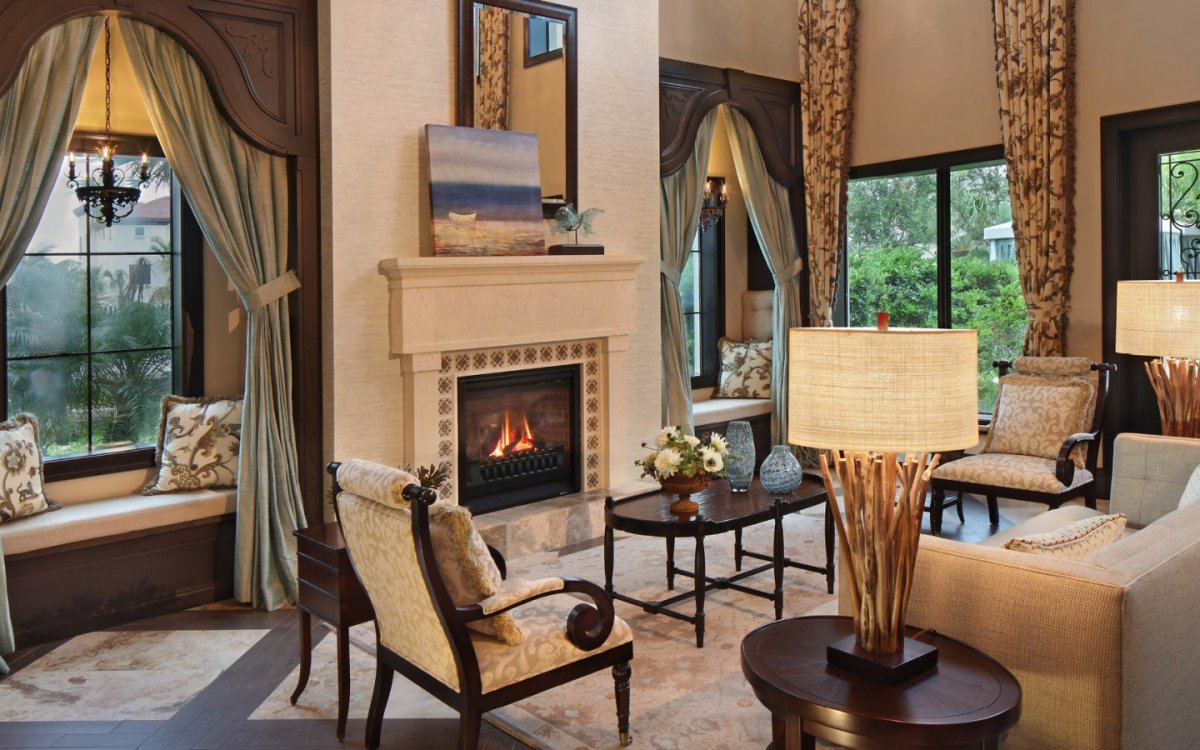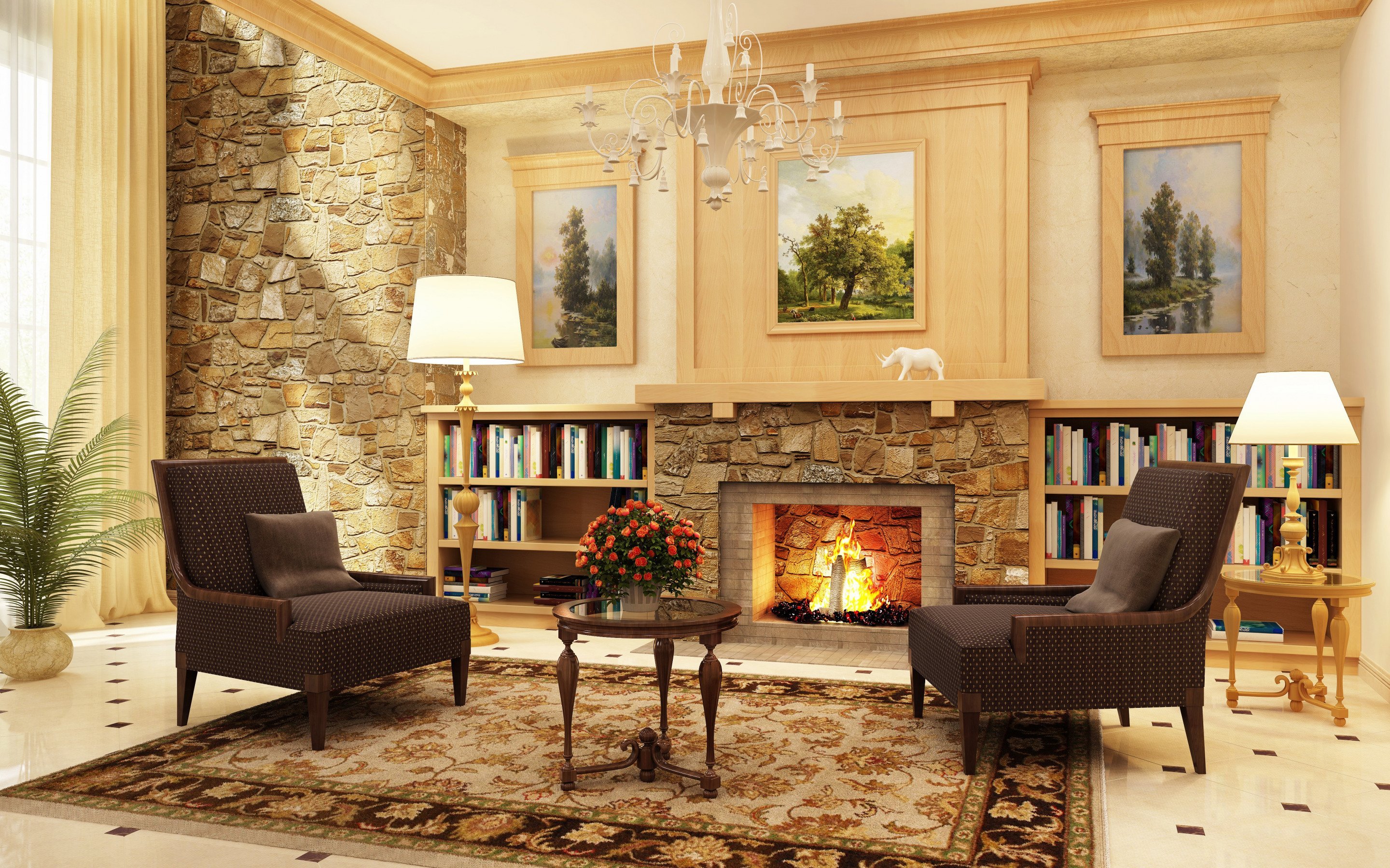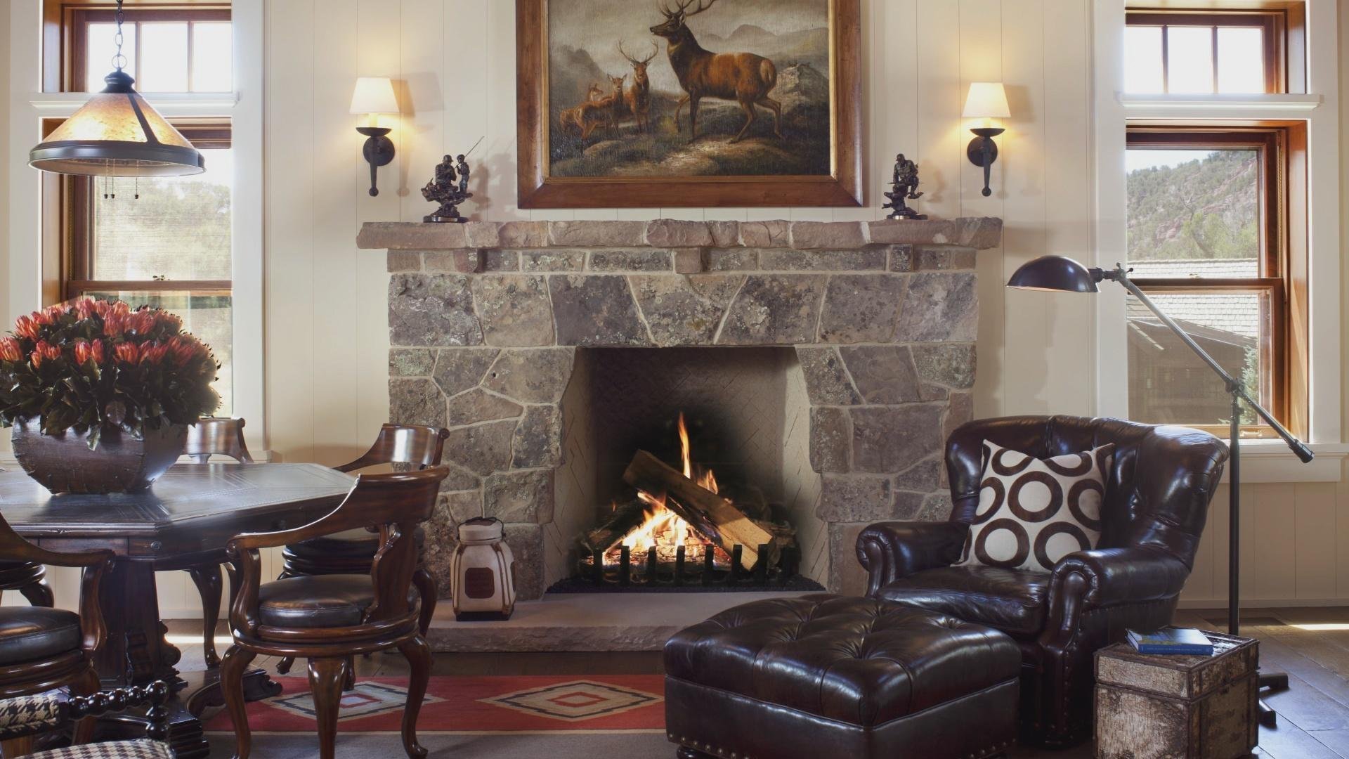 Камин с креслами в интерьере