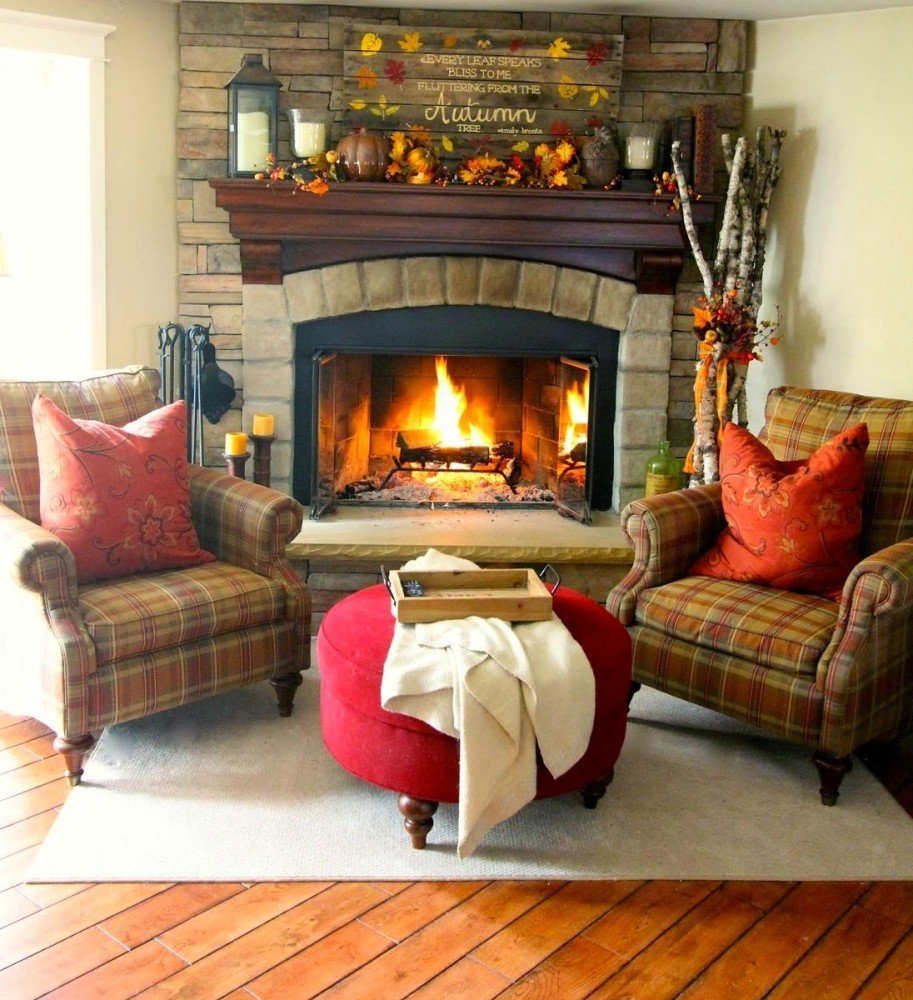 Осенний интерьер с камином
