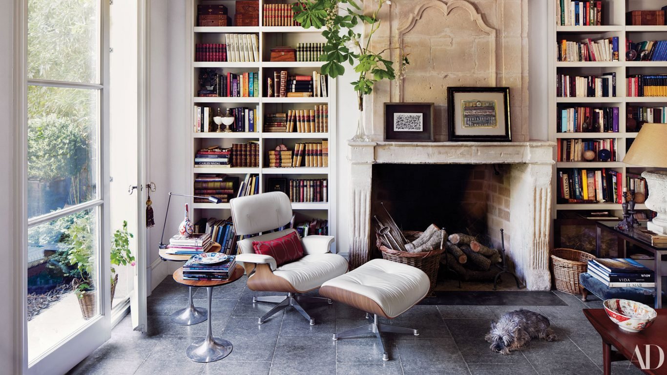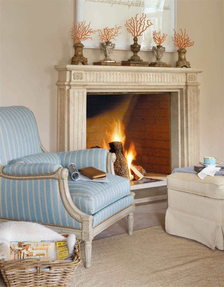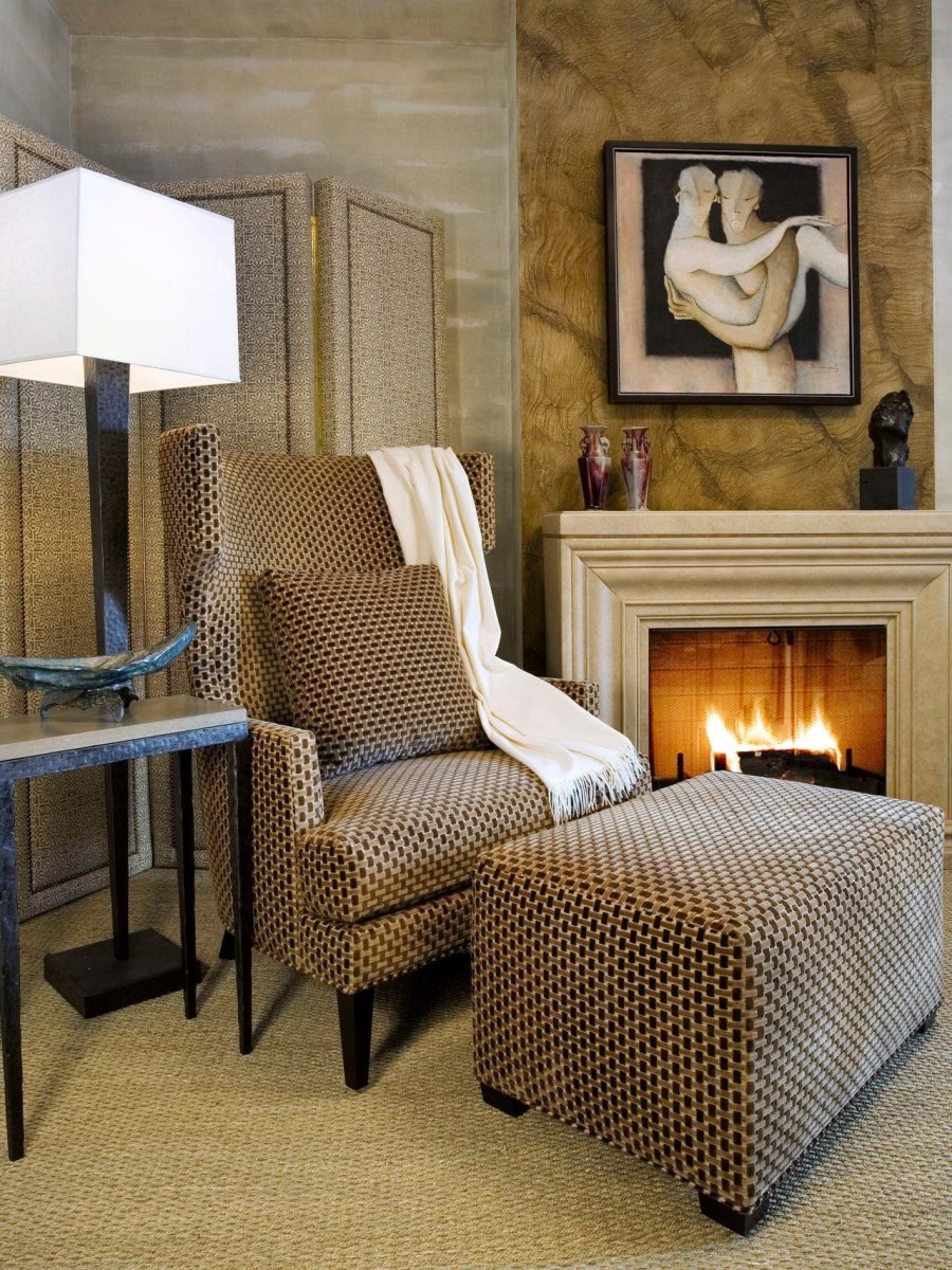 Кресло у камина в интерьере