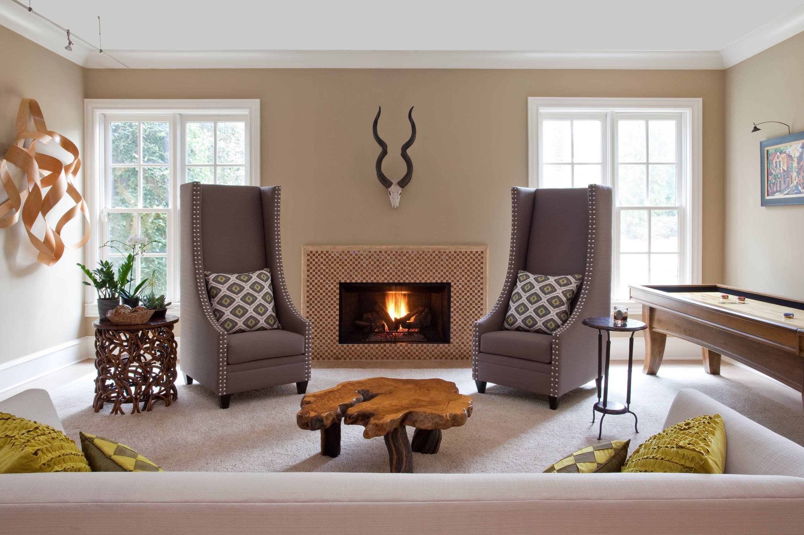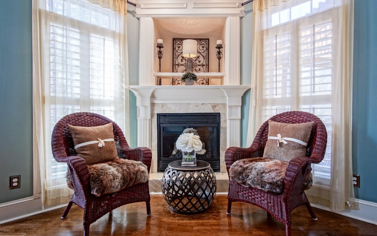 Кресла возле камина в гостиной