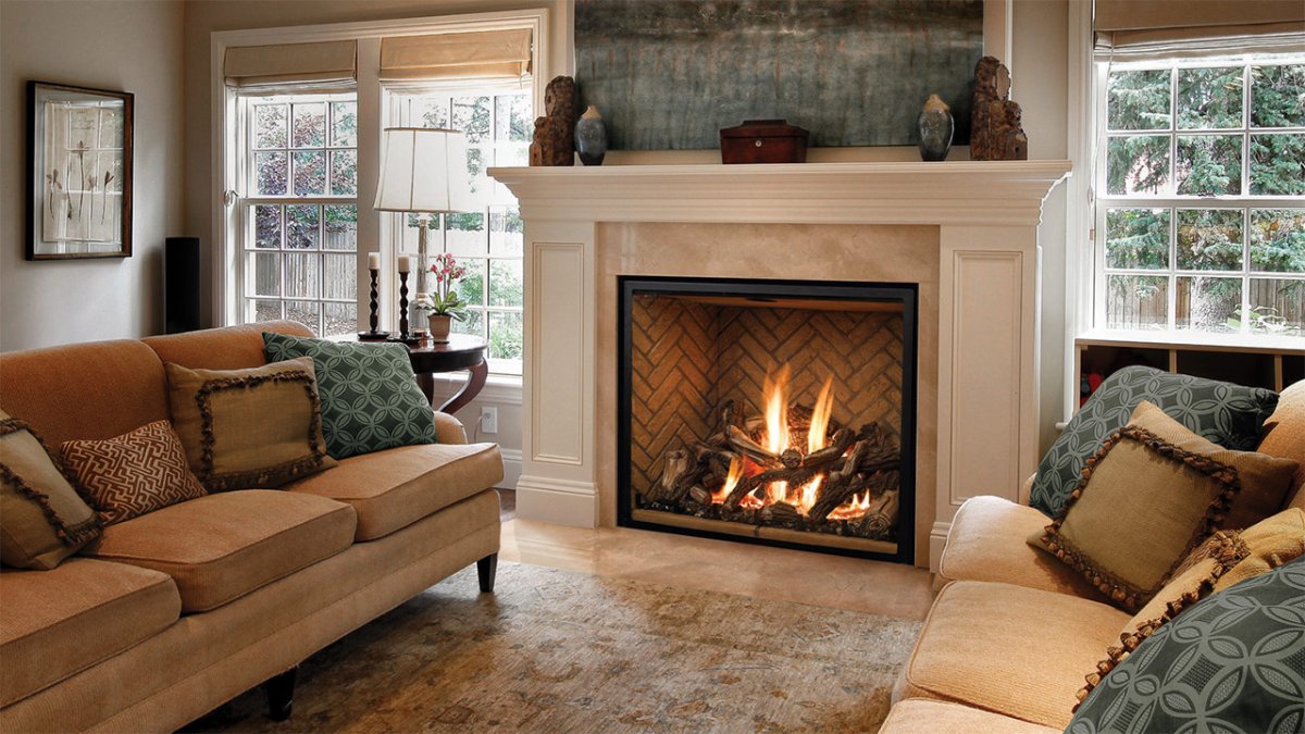 Камин между окнами