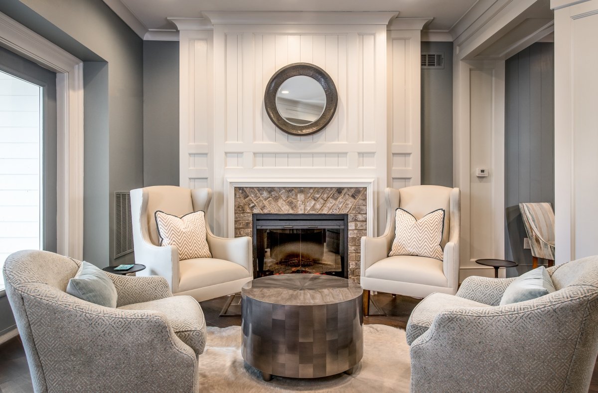 Гостиная с камином и креслами