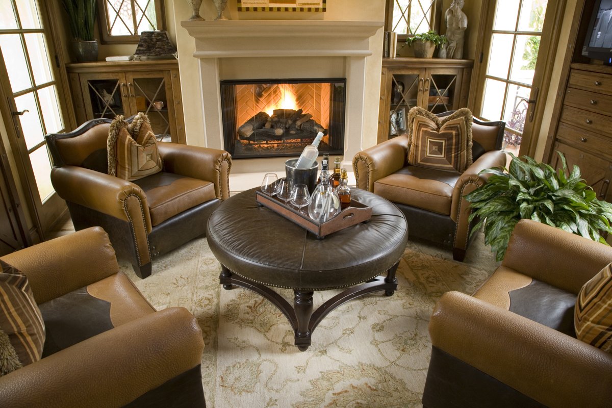 Кожаные кресла возле камина