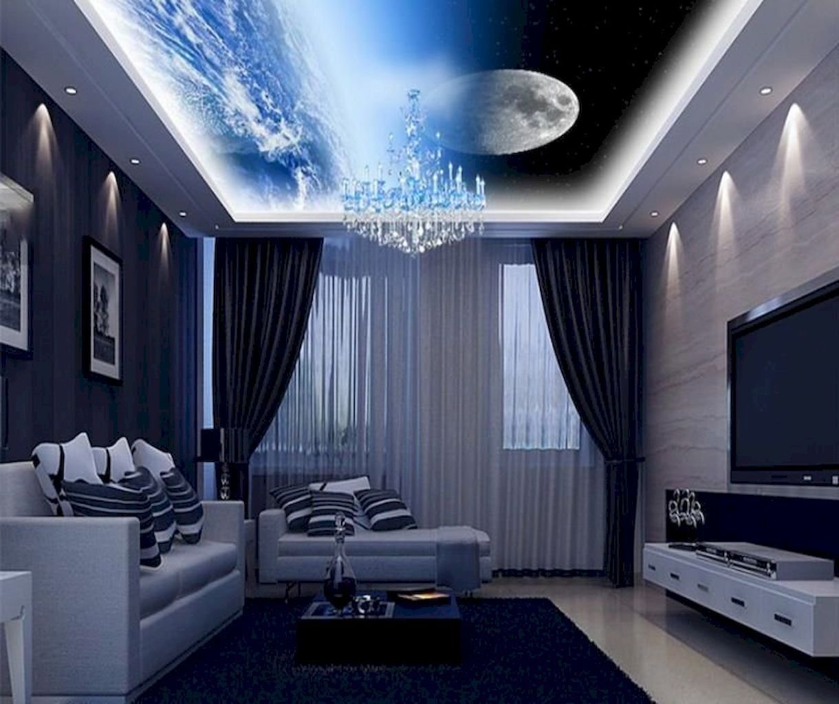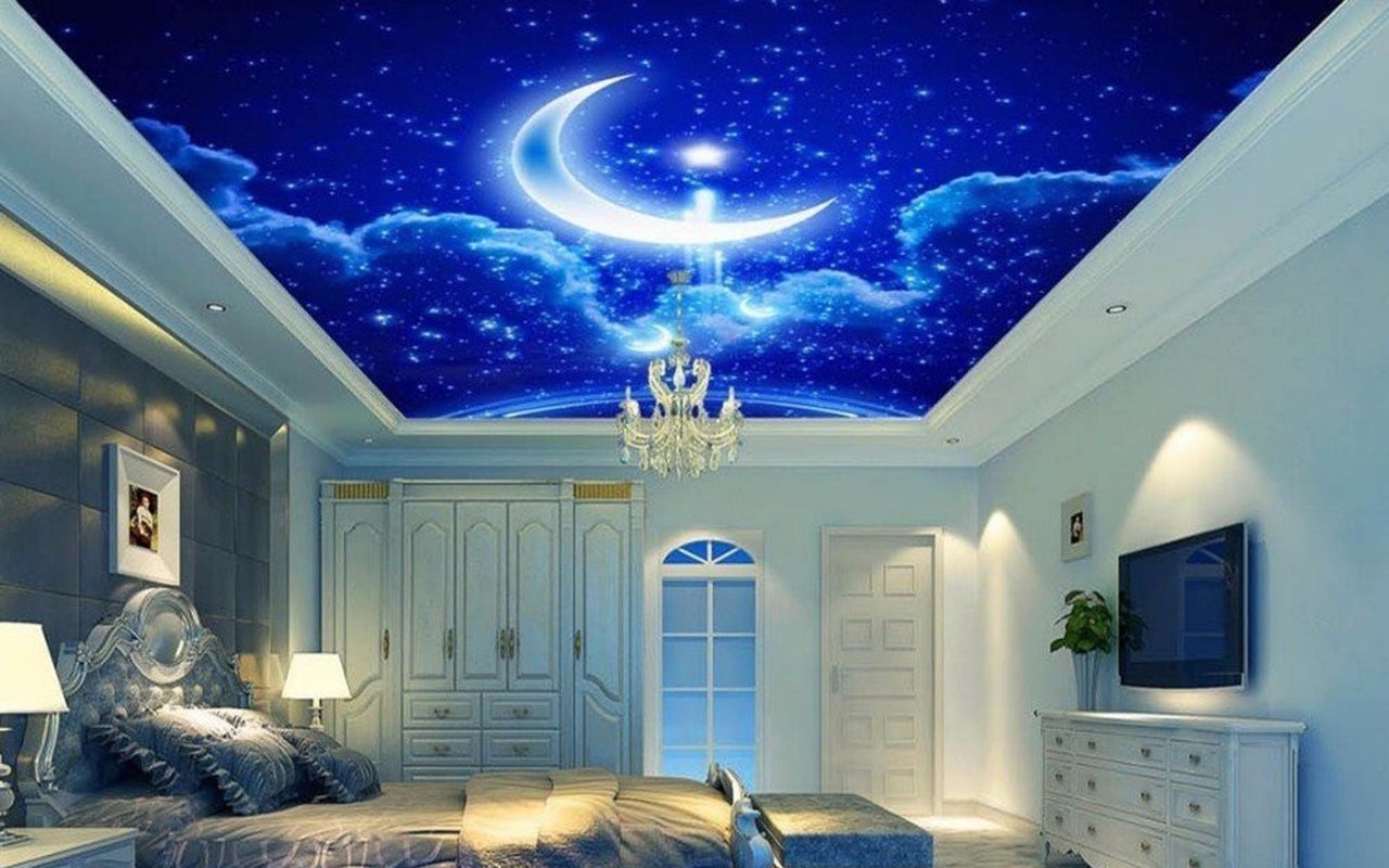 Звездное небо и Луна на потолке