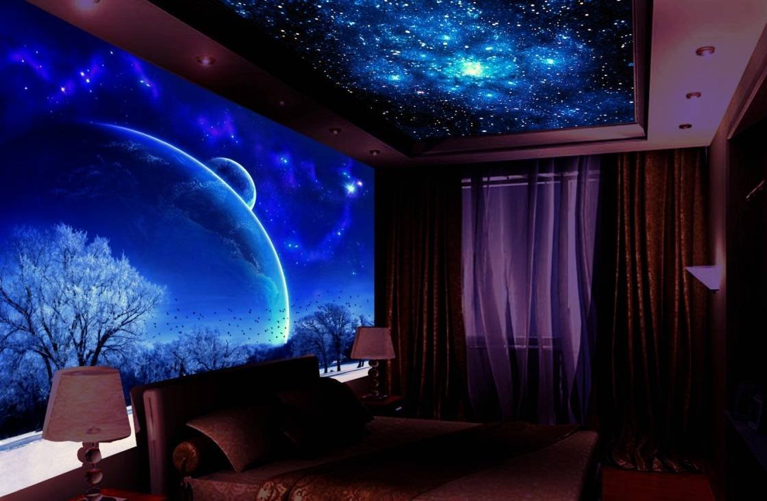 Потолки с космосом в спальне