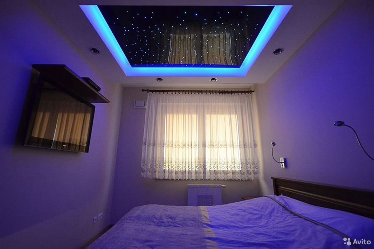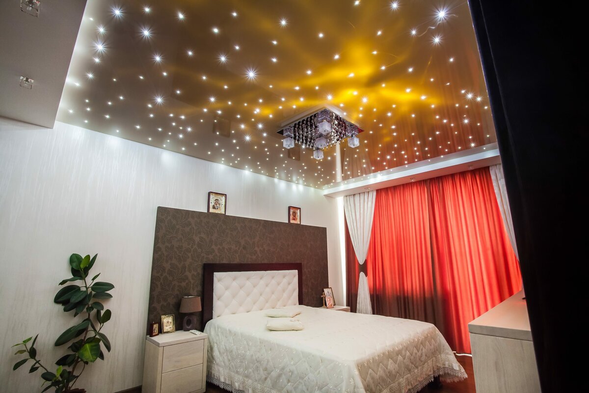 Натяжной потолок звездное небо в спальне