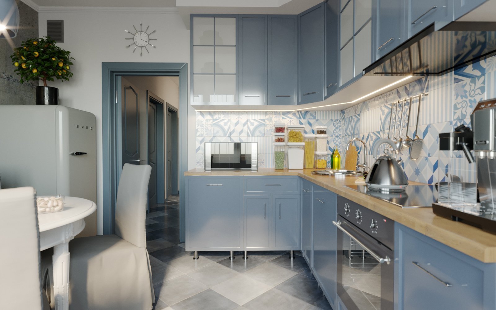 Кухня эмаль матовая 3200 ( фасад RAL 7012, каркас Пикард)