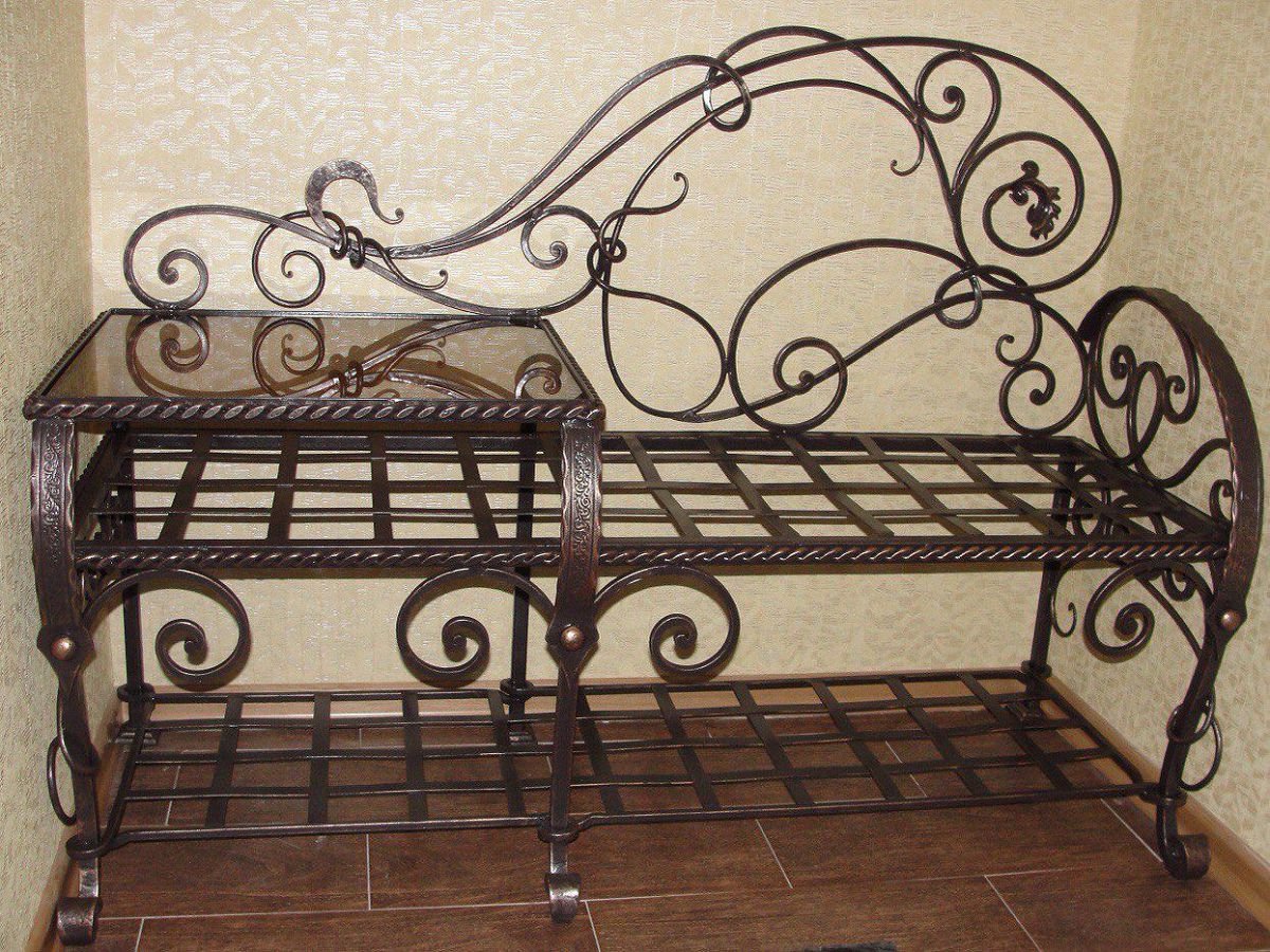 Кованная обувница для прихожей с сиденьем