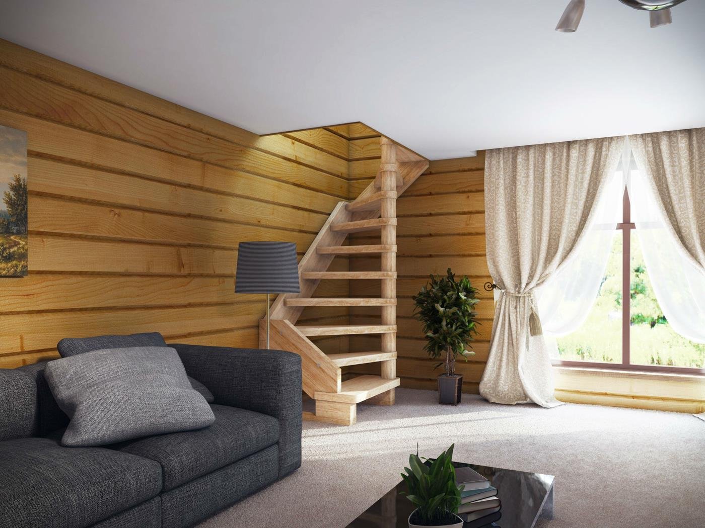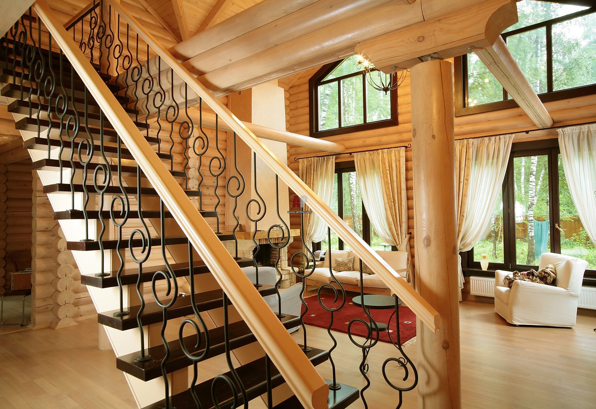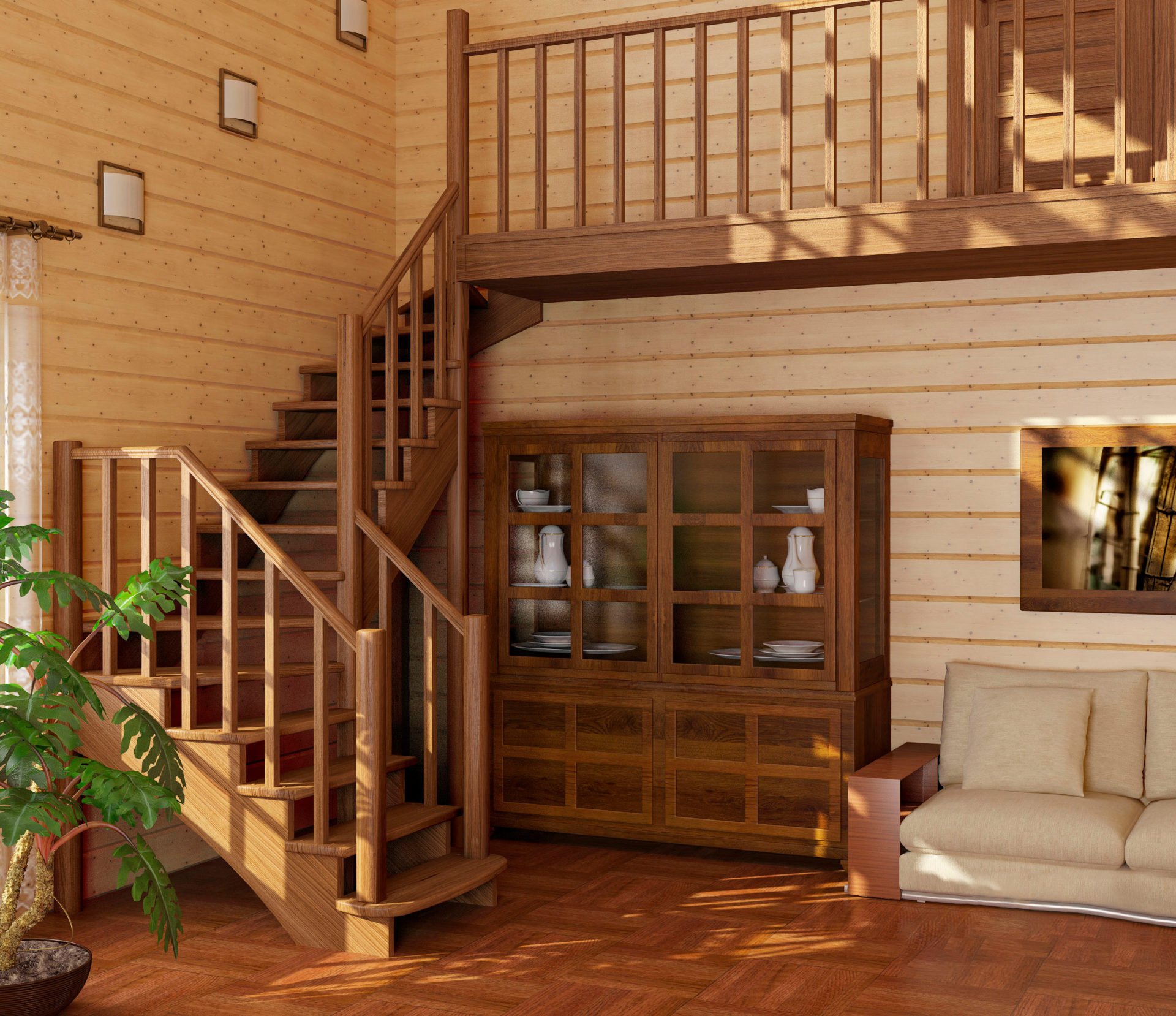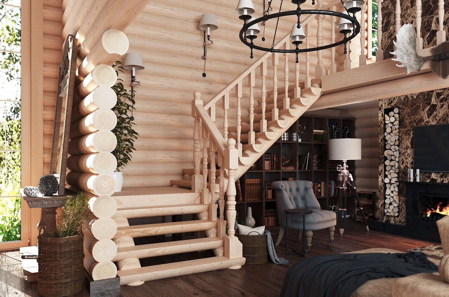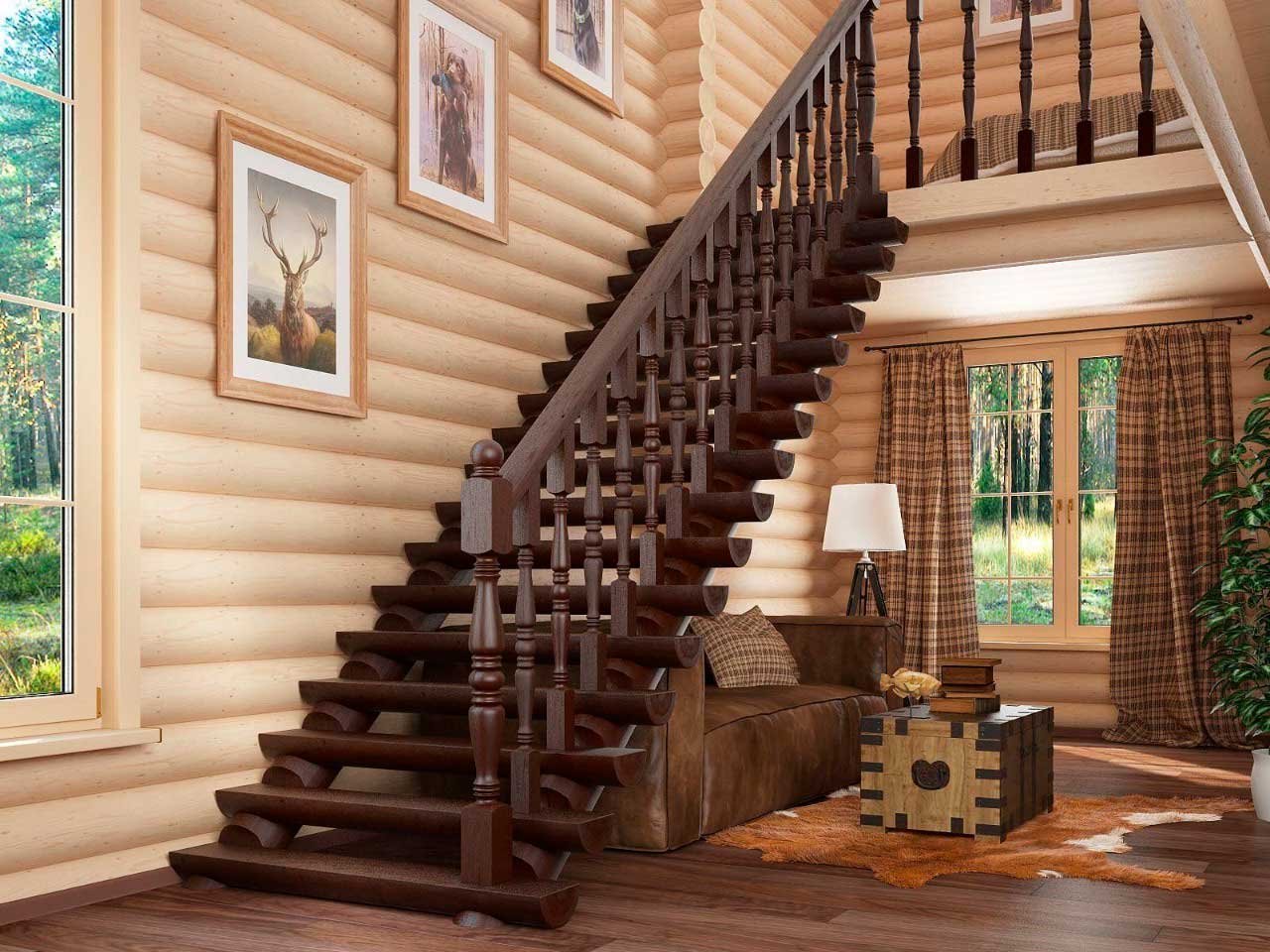 Лестница в интерьере деревянного дома