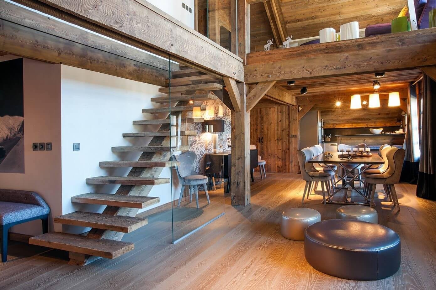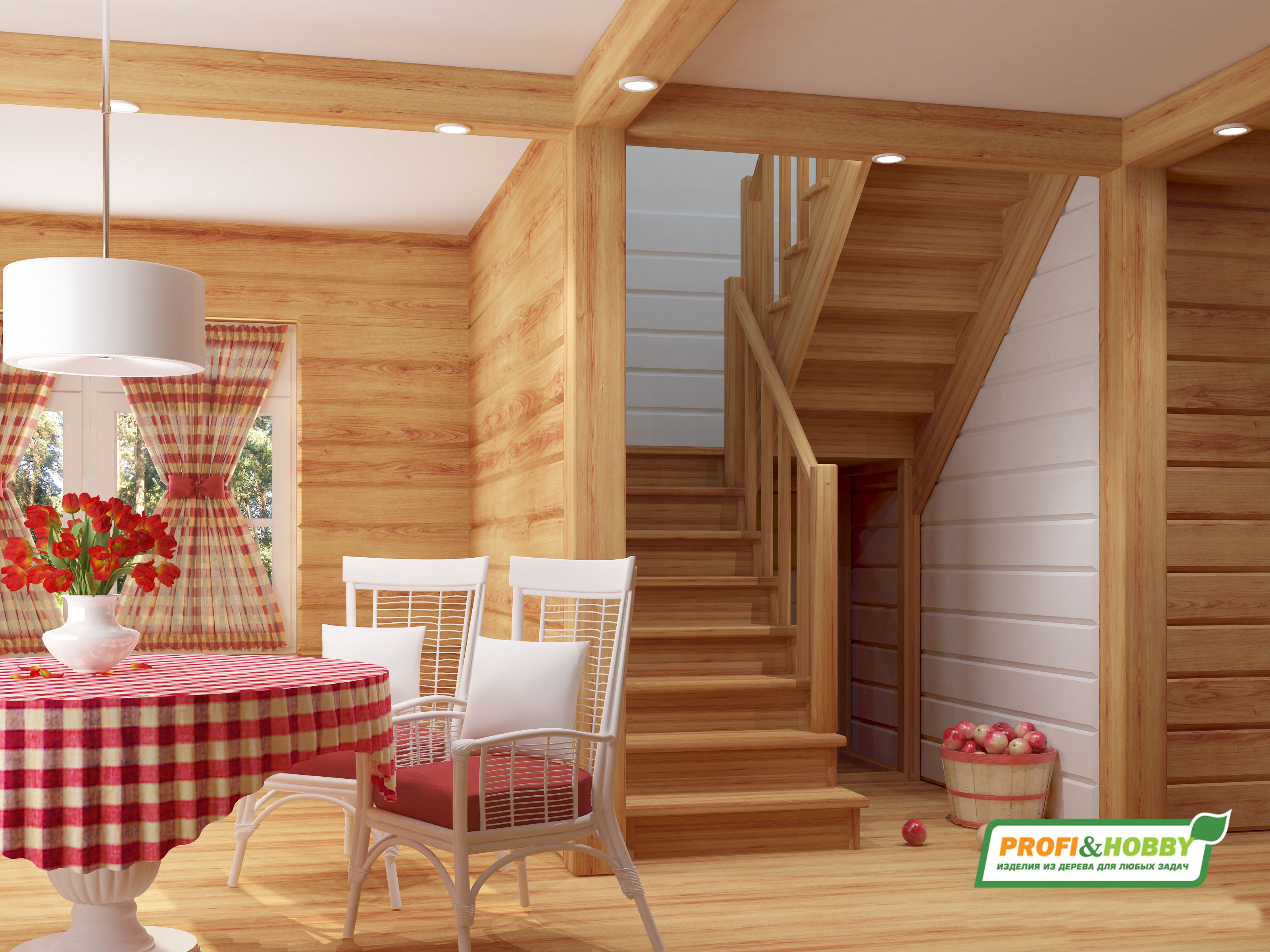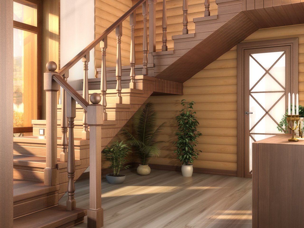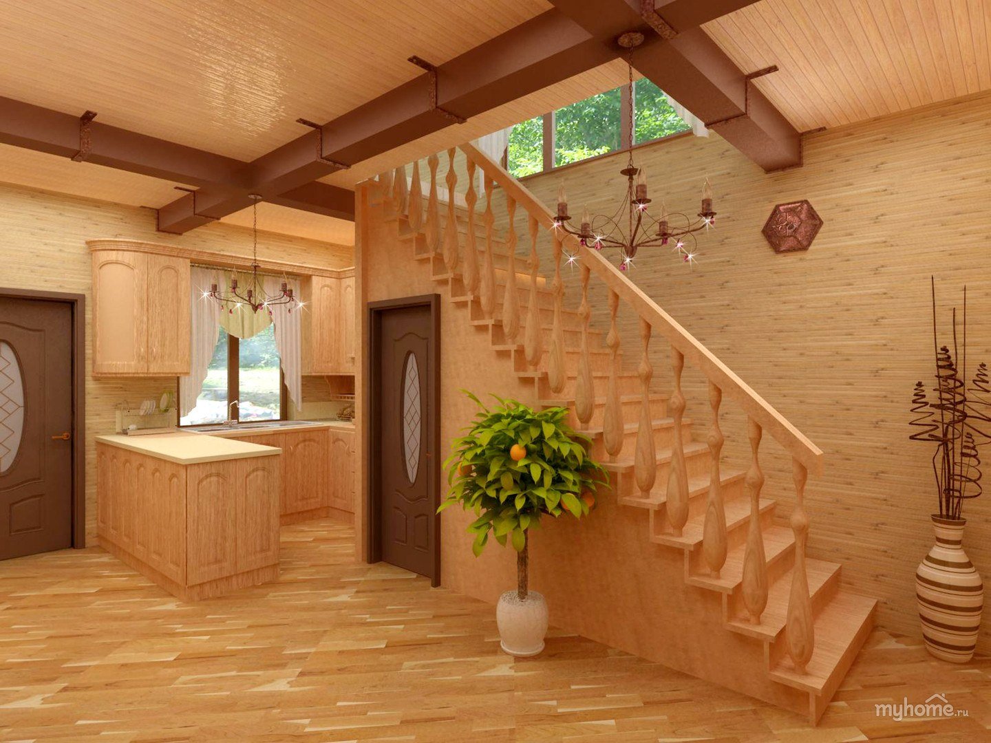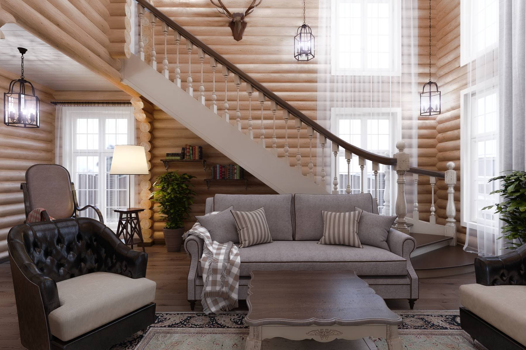 Лестница в интерьере деревянного дома