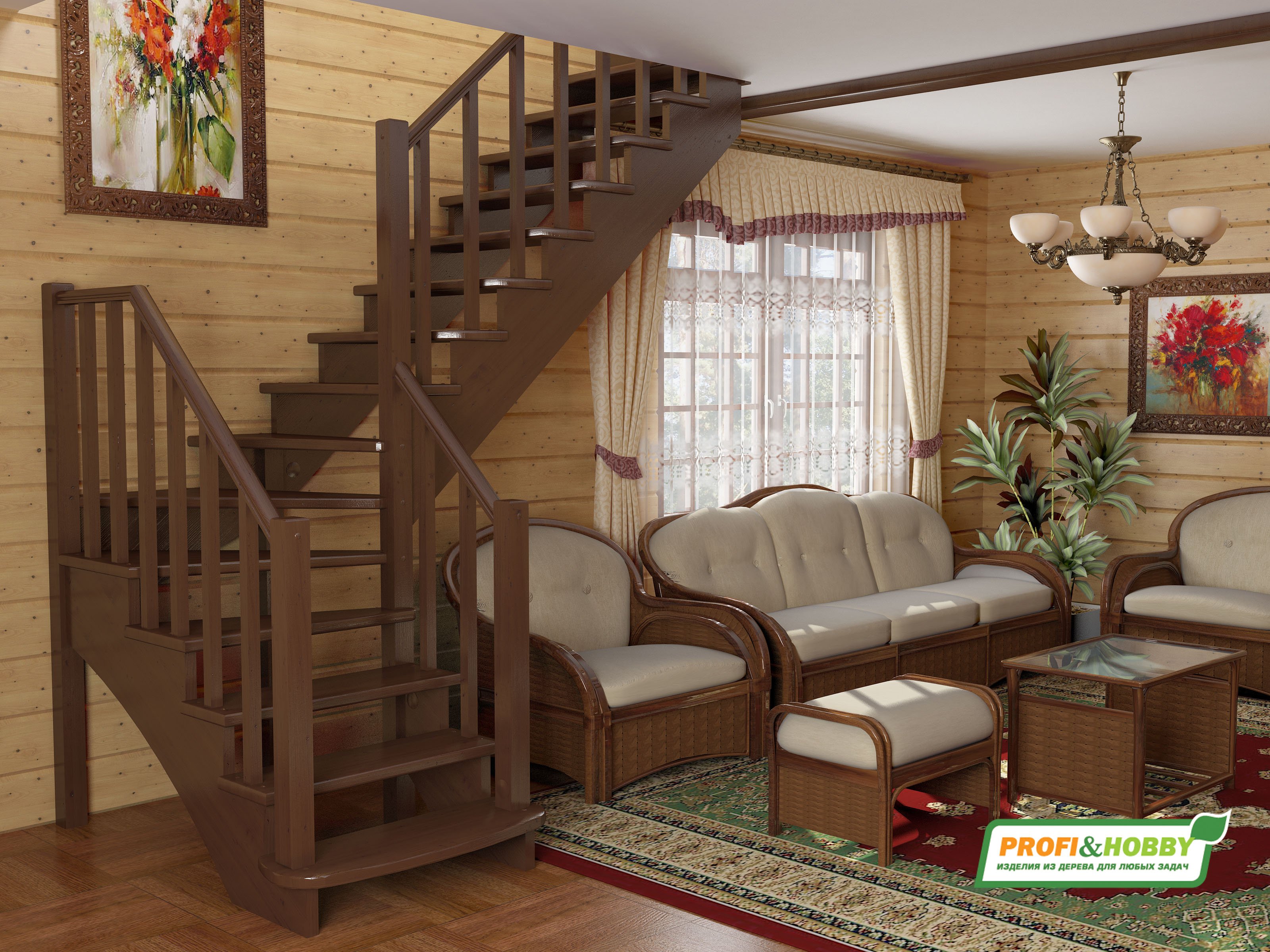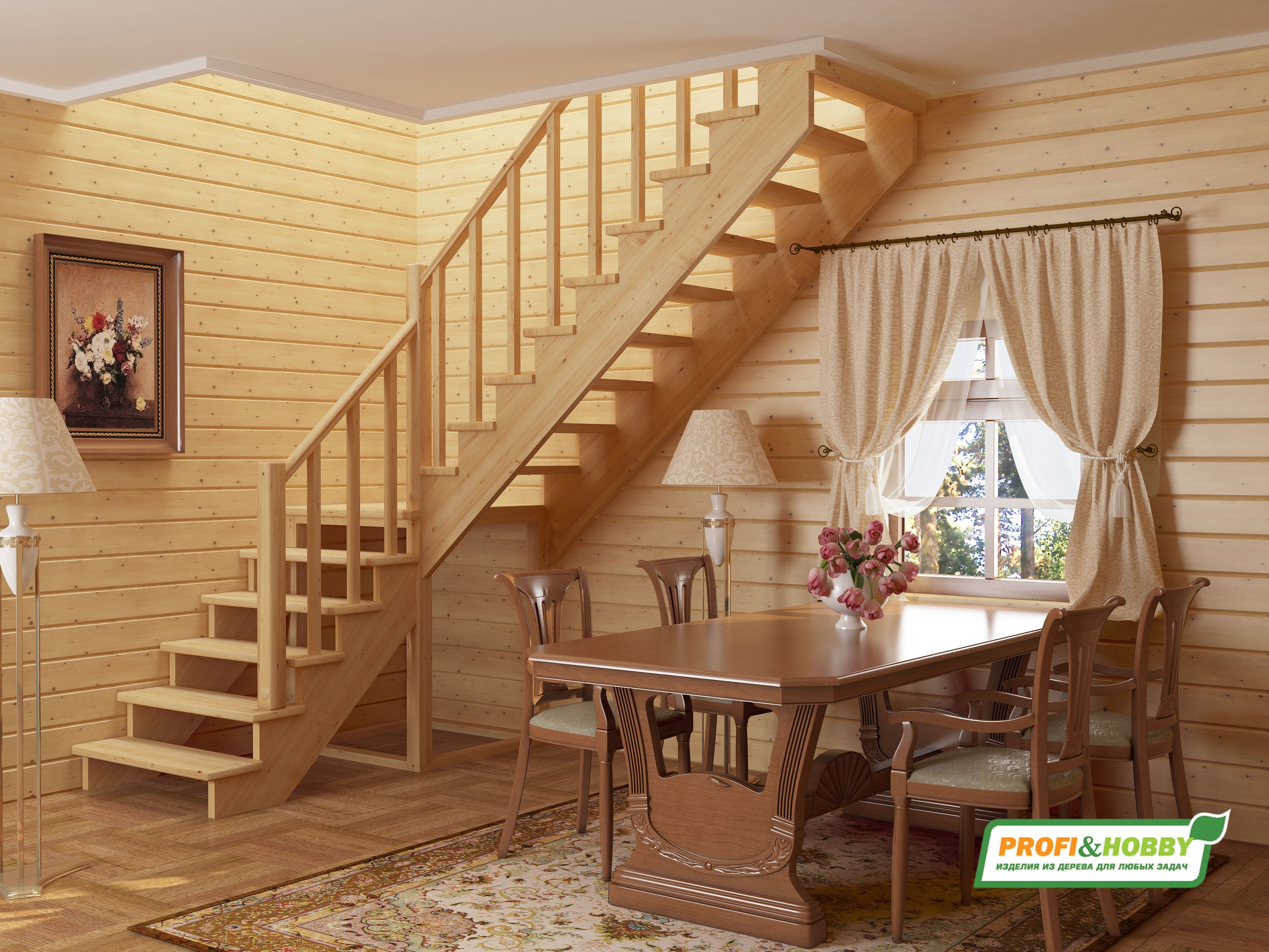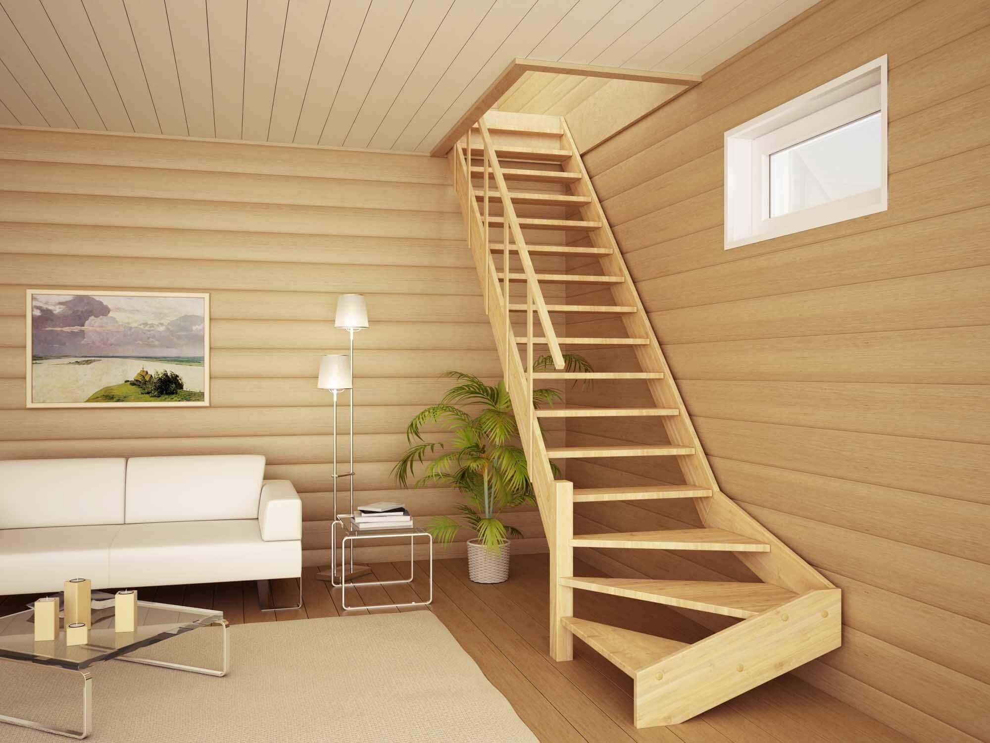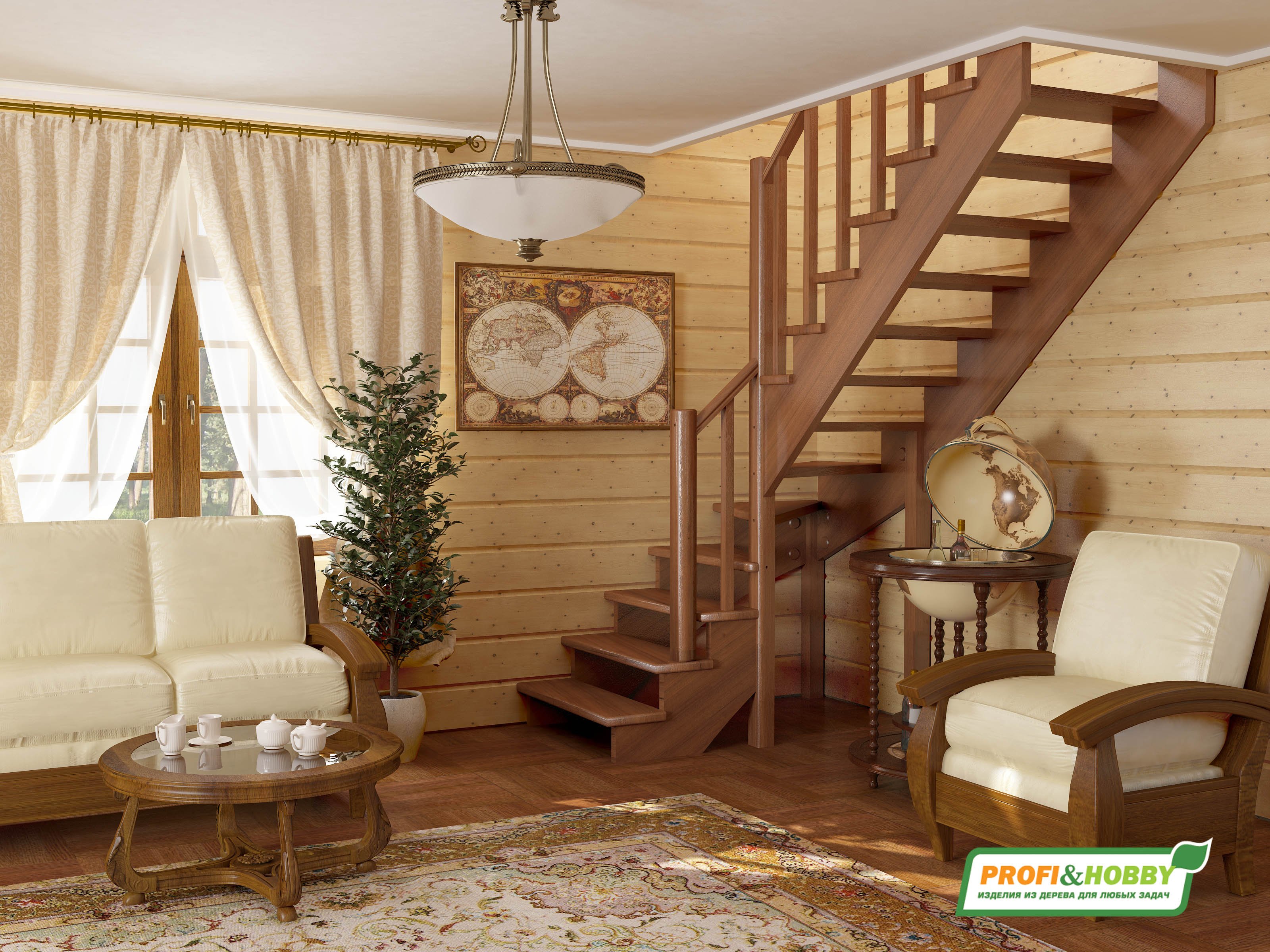 Деревянная лестница в деревянном доме