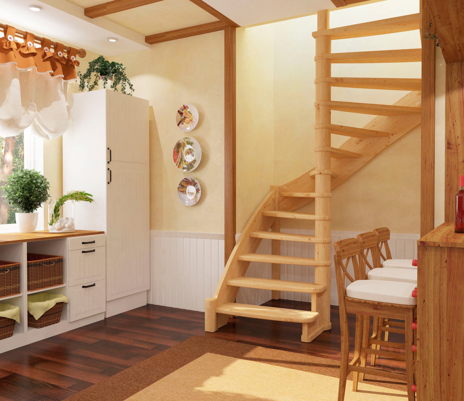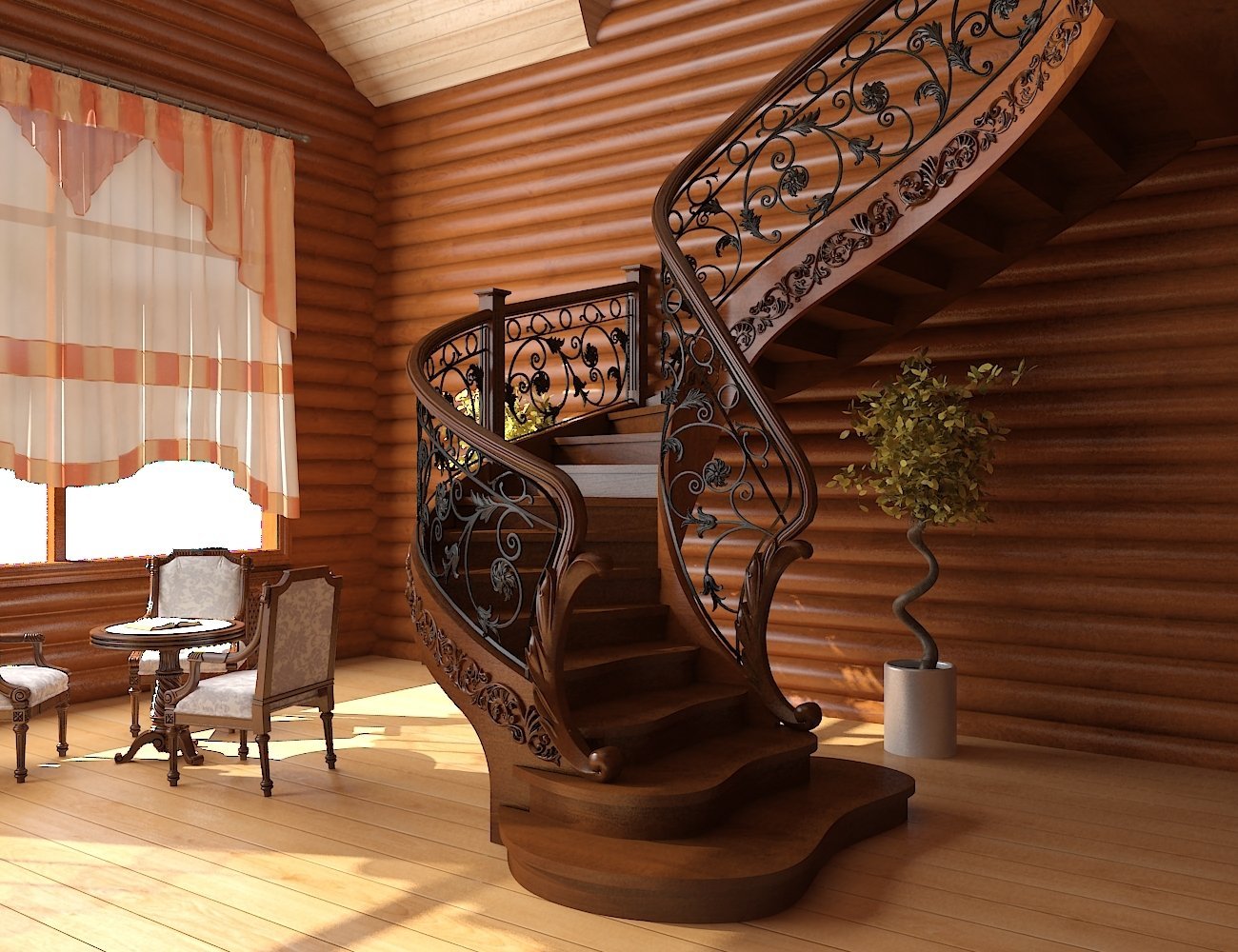 Винтовая лестница в деревянном доме
