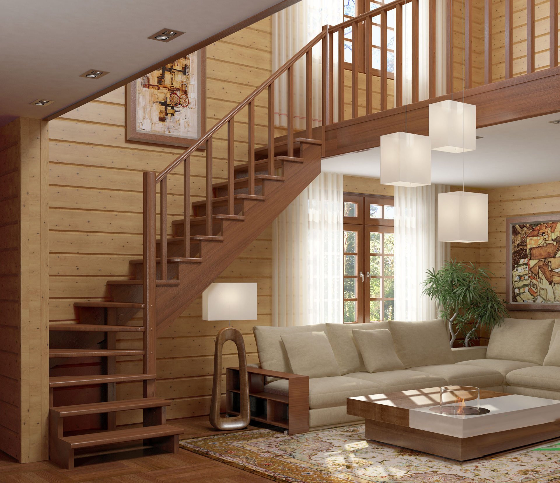Интерьер двухэтажного коттеджа