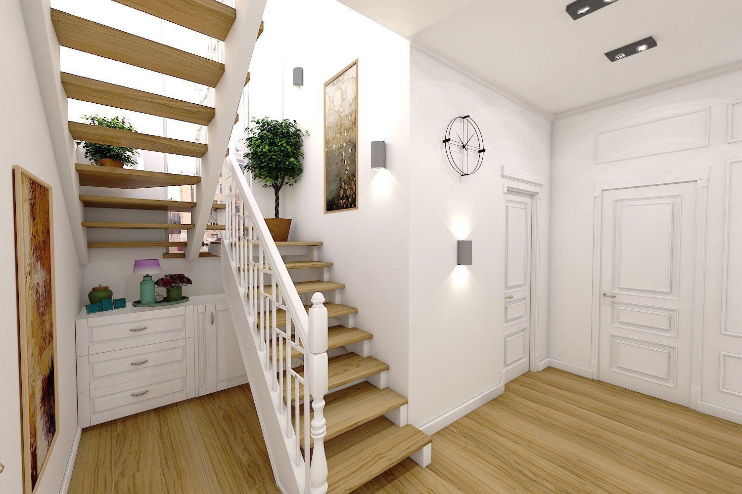 Прихожая с лестницей в частном доме