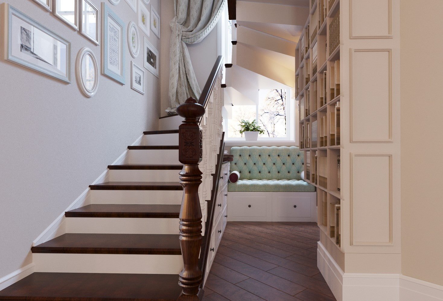 Интерьер лестничного пролета в частном доме