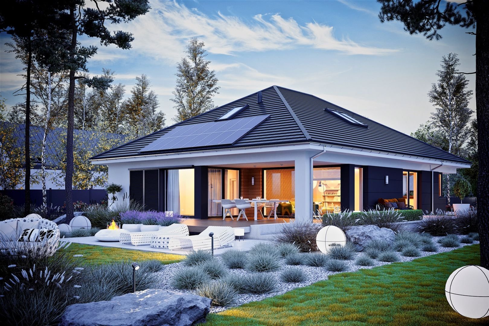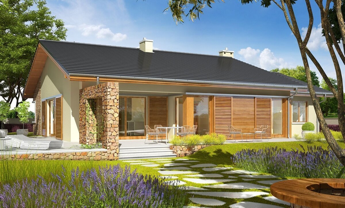 Одноэтажный дом в стиле