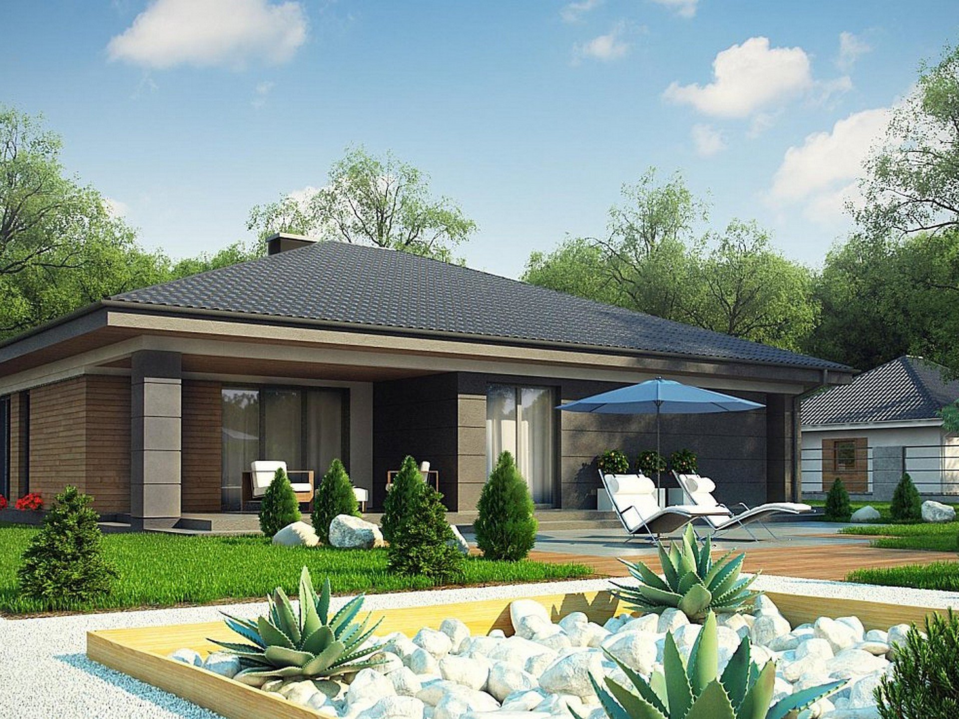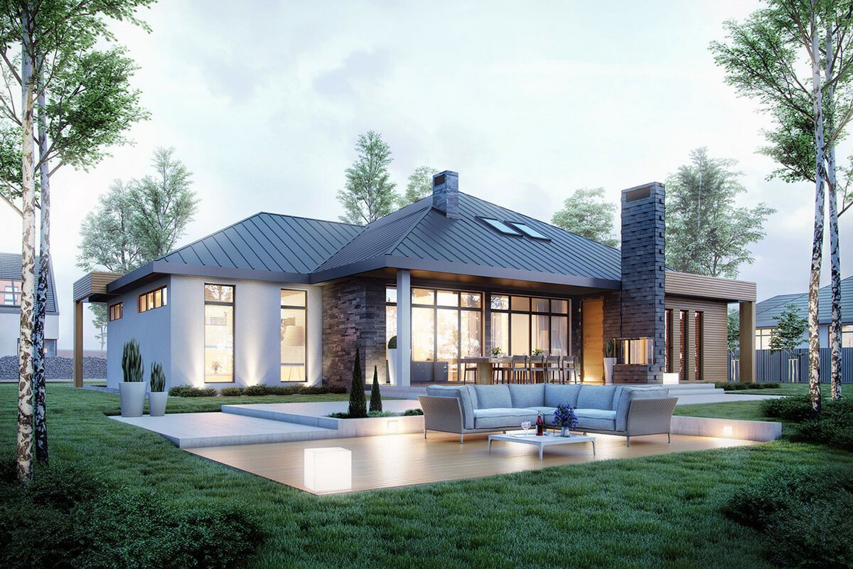 Современный одноэтажный дом с террасой