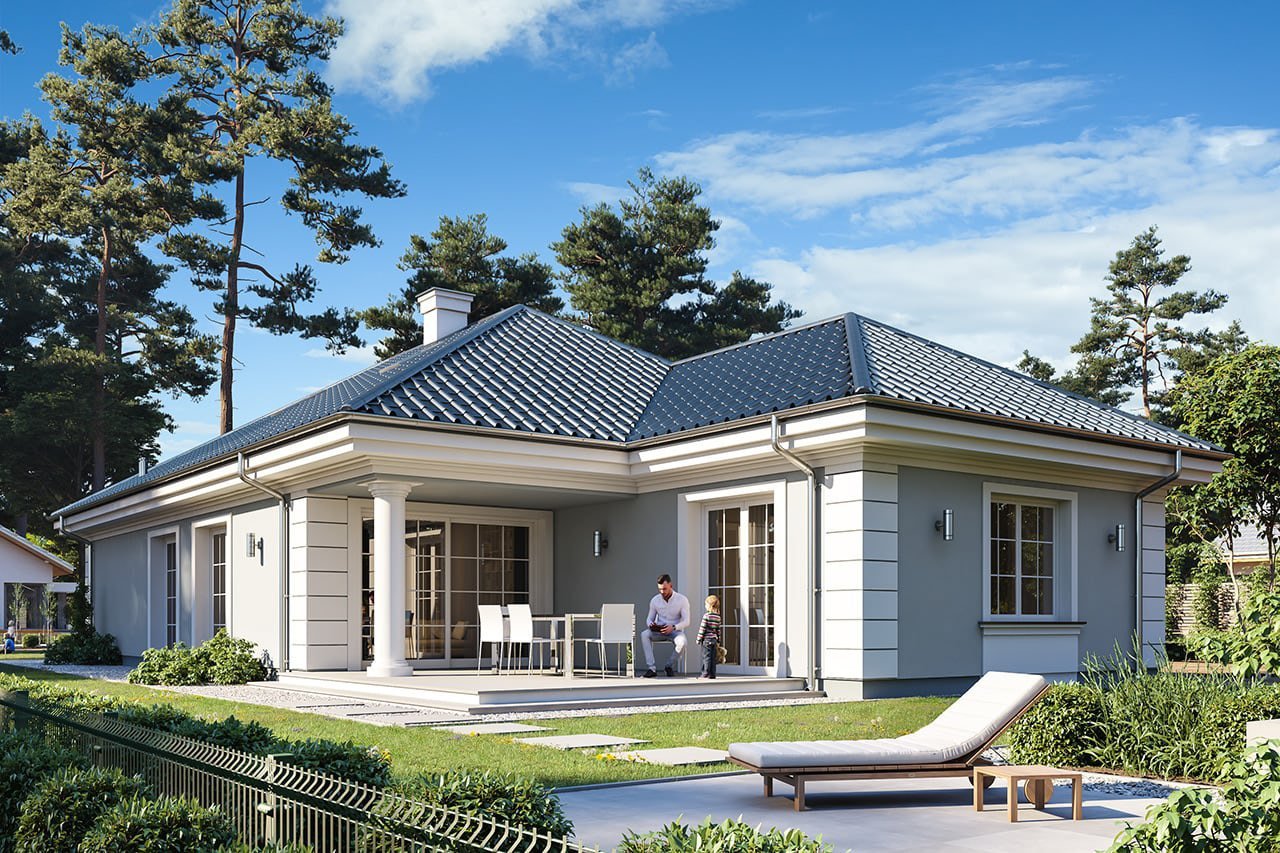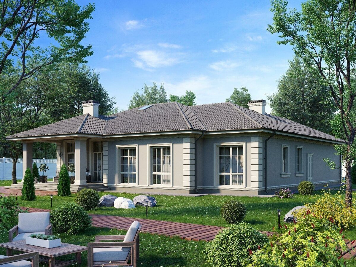 Одноэтажный дом в классическом стиле