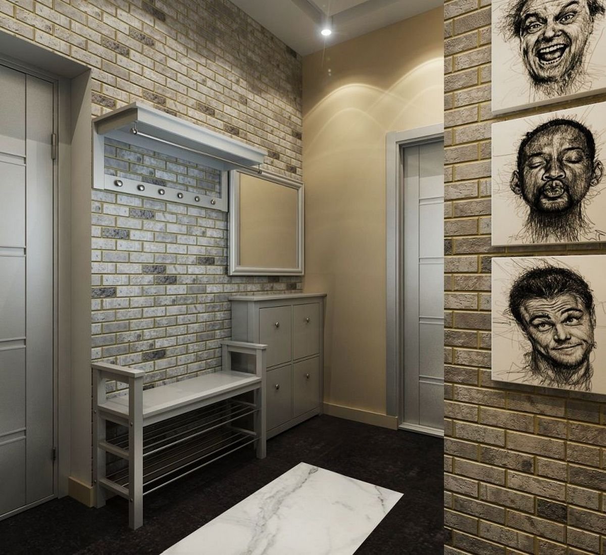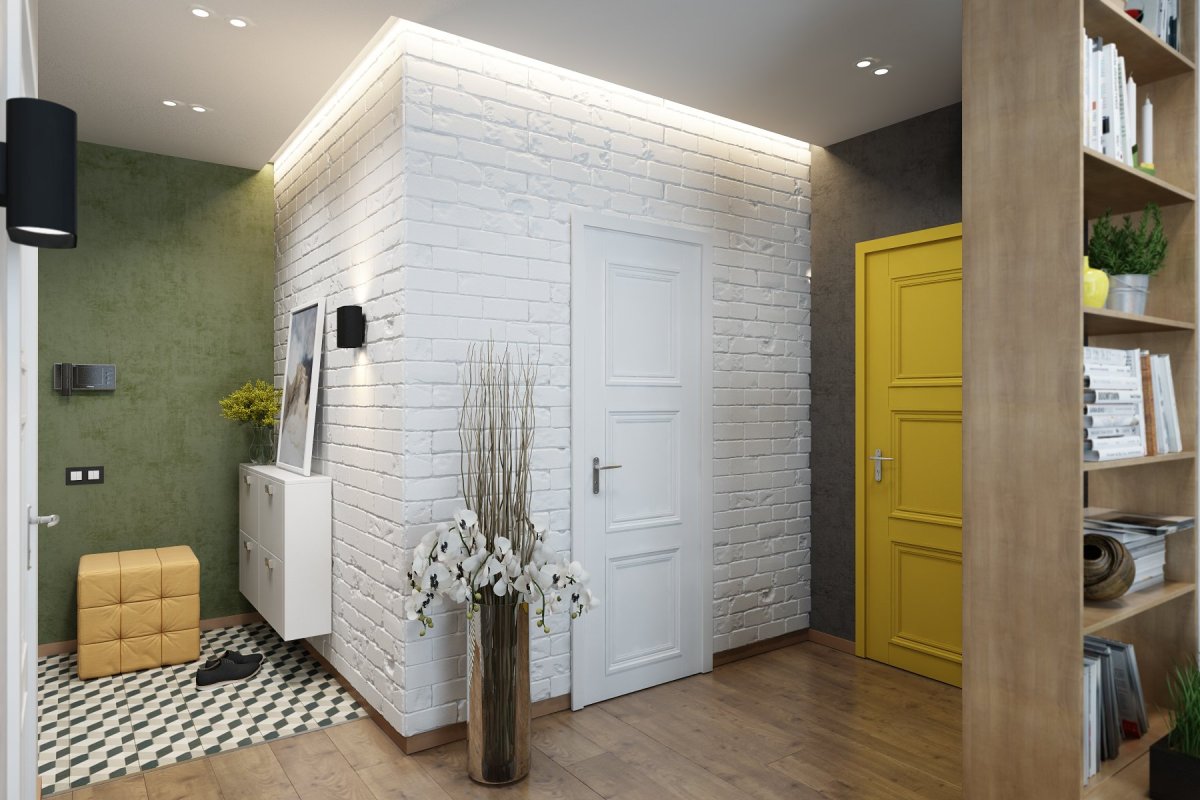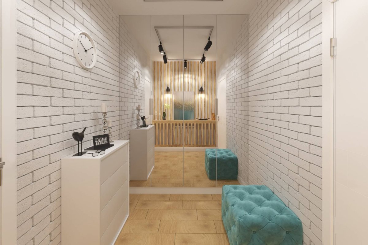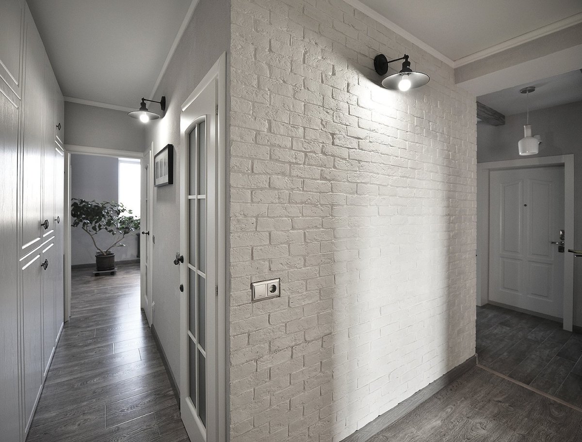 Белый кирпич в интерьере прихожей