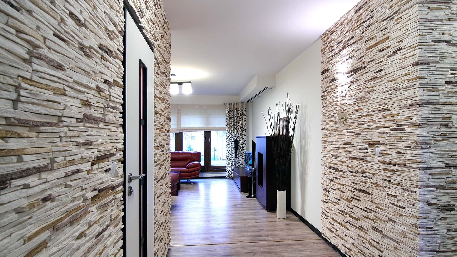 Отделка коридора искусственным камнем
