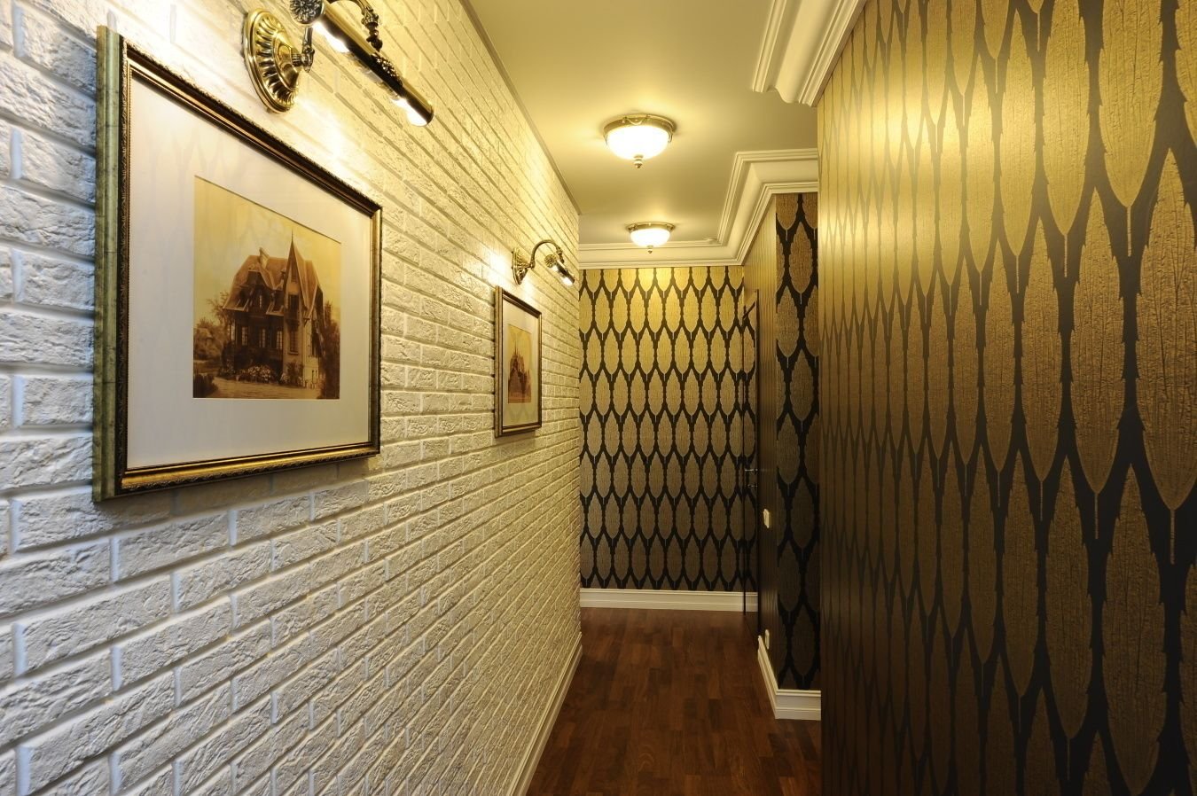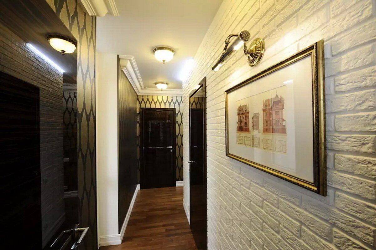 Обои под кирпич в коридоре