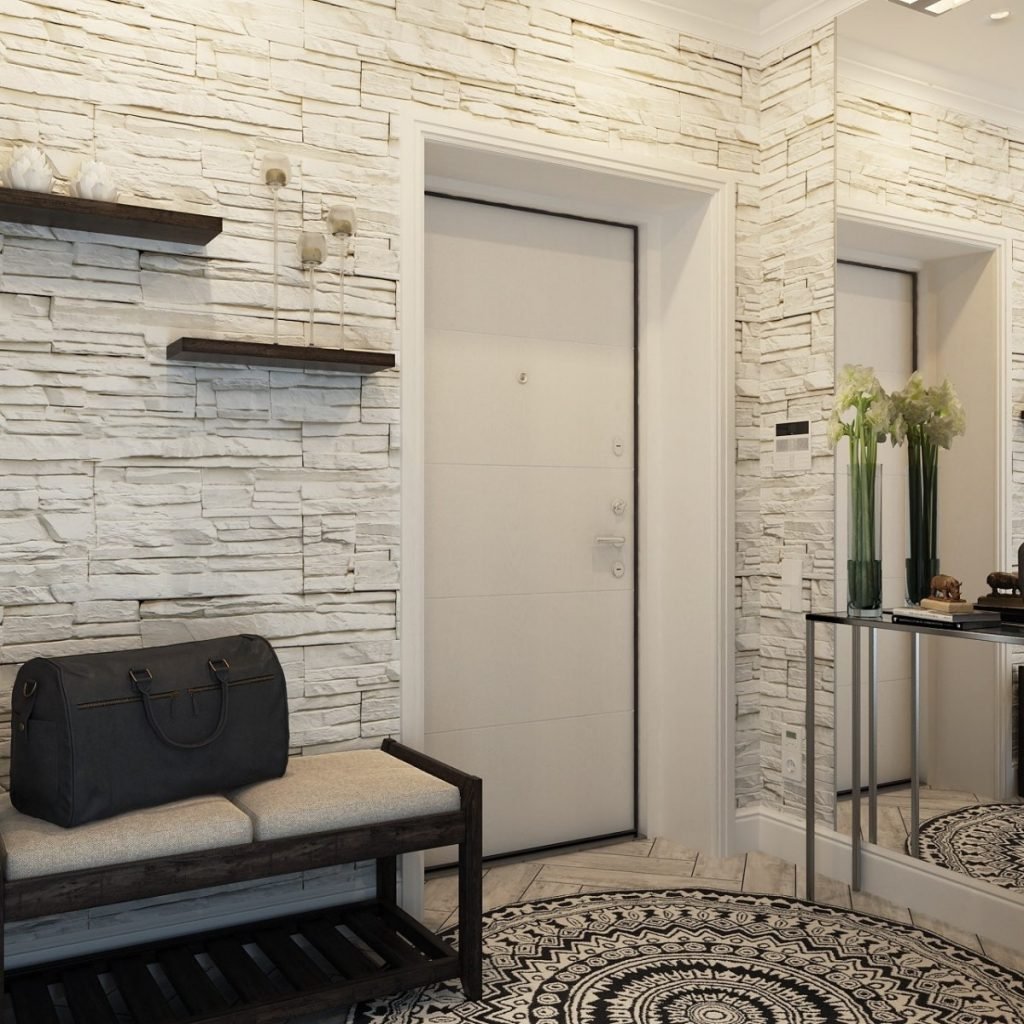 Декоративный камень в интерьере прихожей
