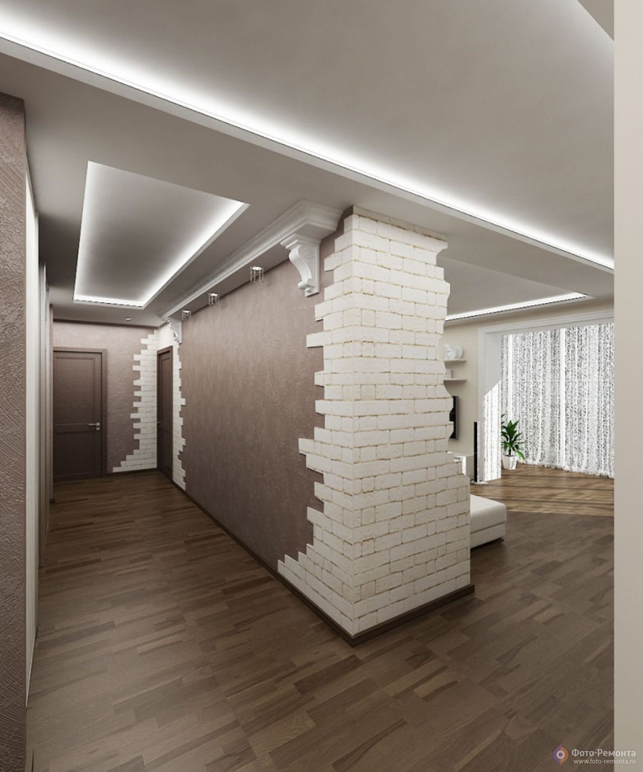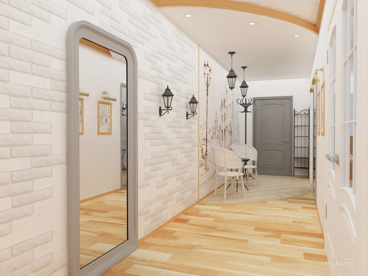 Коридор белый кирпич