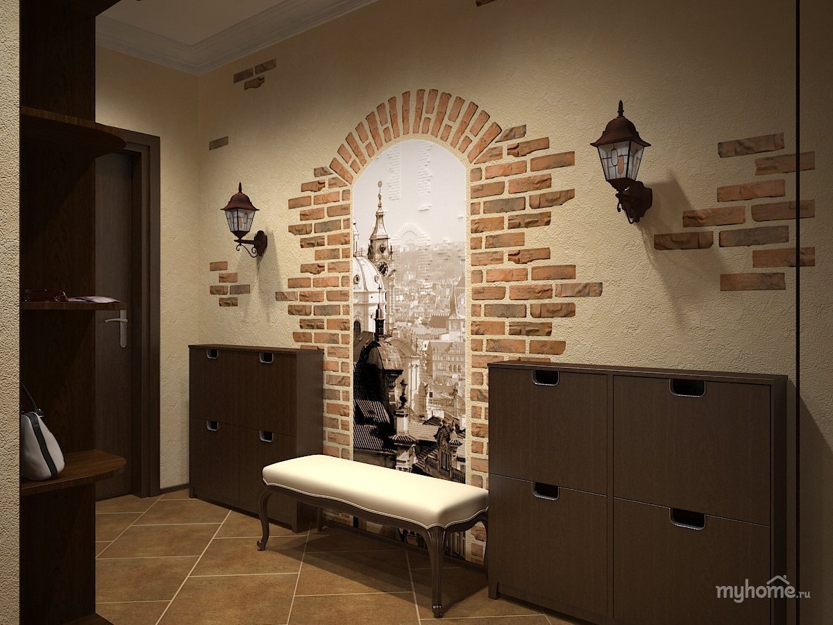 Кирпичики в прихожей интерьер