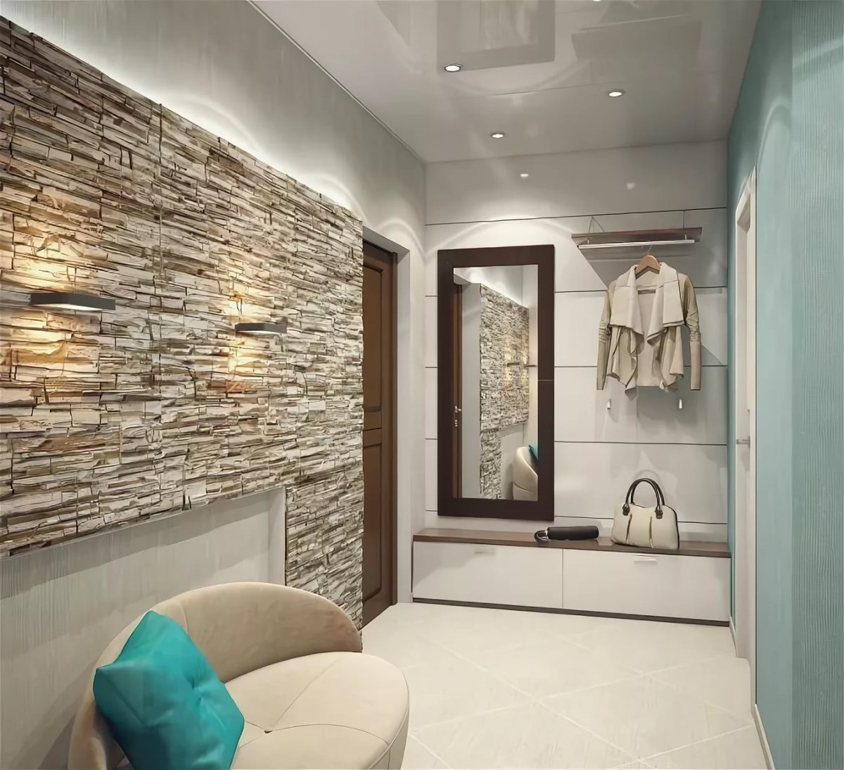 Прихожая в современном стиле декоративный камень